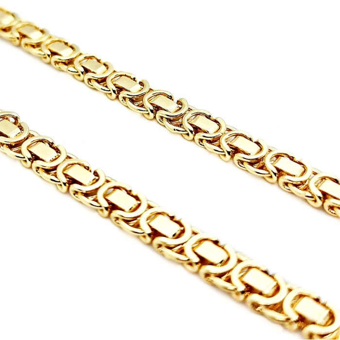 Królewski, jak już sama nazwa splotu wskazuje, to wyjątkowo luksusowy wzór w jubilerstwie. Charakteryzuje się on złożoną, misterną strukturą, która składa się z wielu ciasno splecionych ogniw tworzących gęstą, plecioną formę. Efekt końcowy jest niezwykle ozdobny i przyciągający uwagę, a sam splot ma trójwymiarowy, bogaty wygląd.