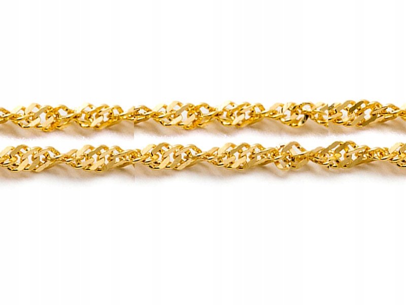 Splot Singapur charakteryzuje się skręconym, spiralnym układem ogniw. Ogniwa w tym splocie są połączone w taki sposób, że tworzą delikatny, skręcony wzór, który odbija światło, nadając łańcuszkowi subtelny połysk i dynamikę. Dzięki temu splot Singapur wydaje się wyjątkowo lekki i płynny.
