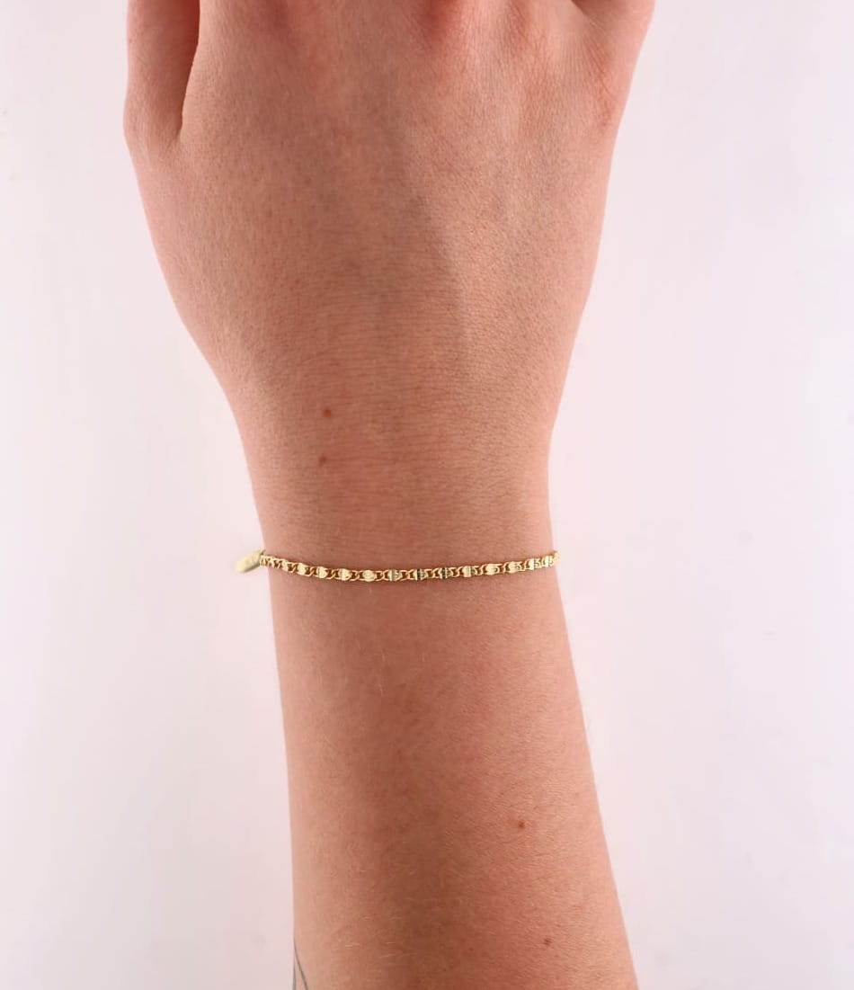 Link to bransoletka o klasycznym, minimalistycznym splocie ogniw, który subtelnie oplata nadgarstek. Wykonana ze stali szlachetnej i pozłacana 14-karatowym złotem, zachwyca lekkością i elegancją w codziennym wydaniu. Jej prosta forma sprawia, że jest idealnym wyborem dla osób szukających delikatnych pozłacanych bransoletek na rękę.