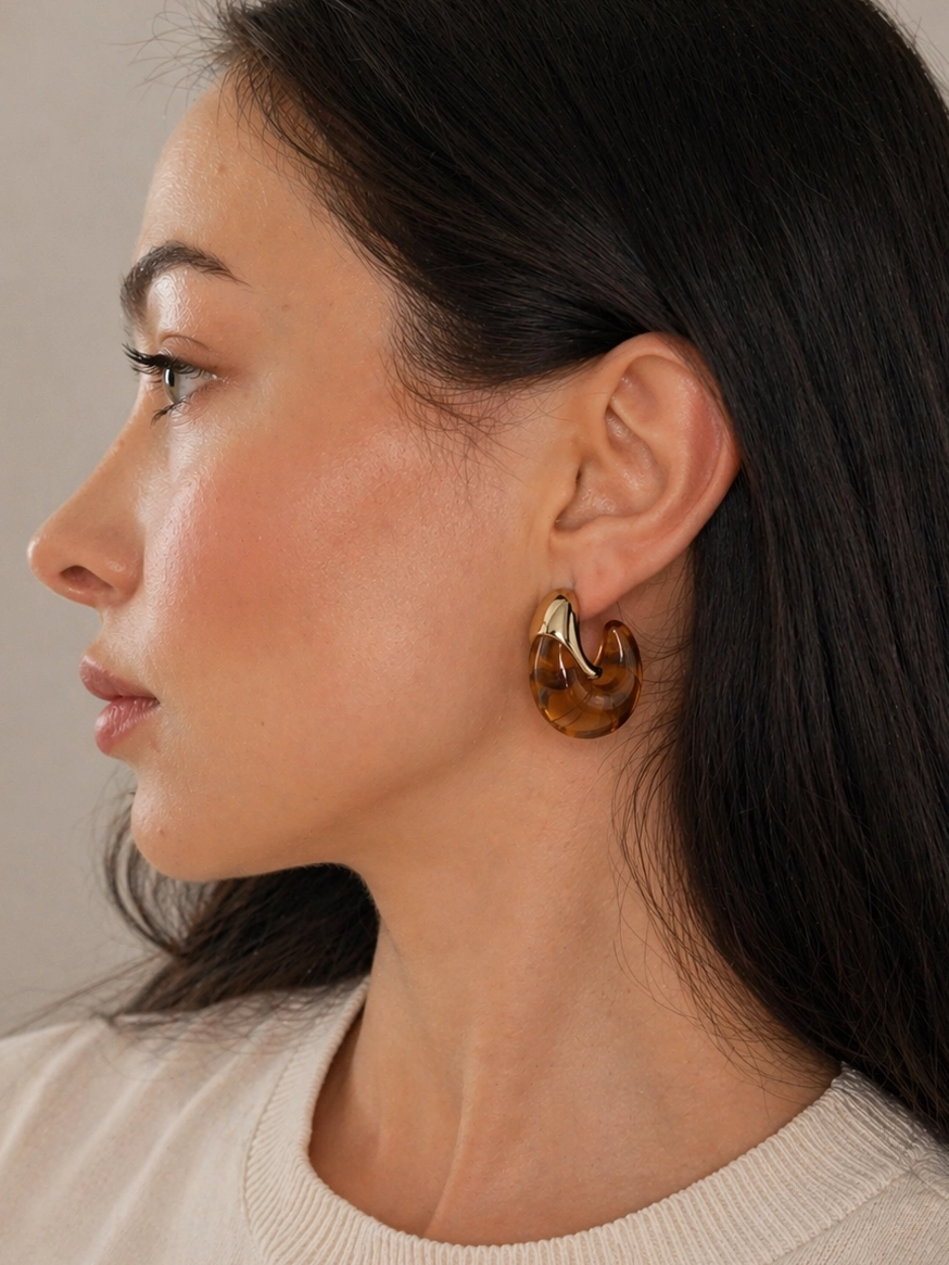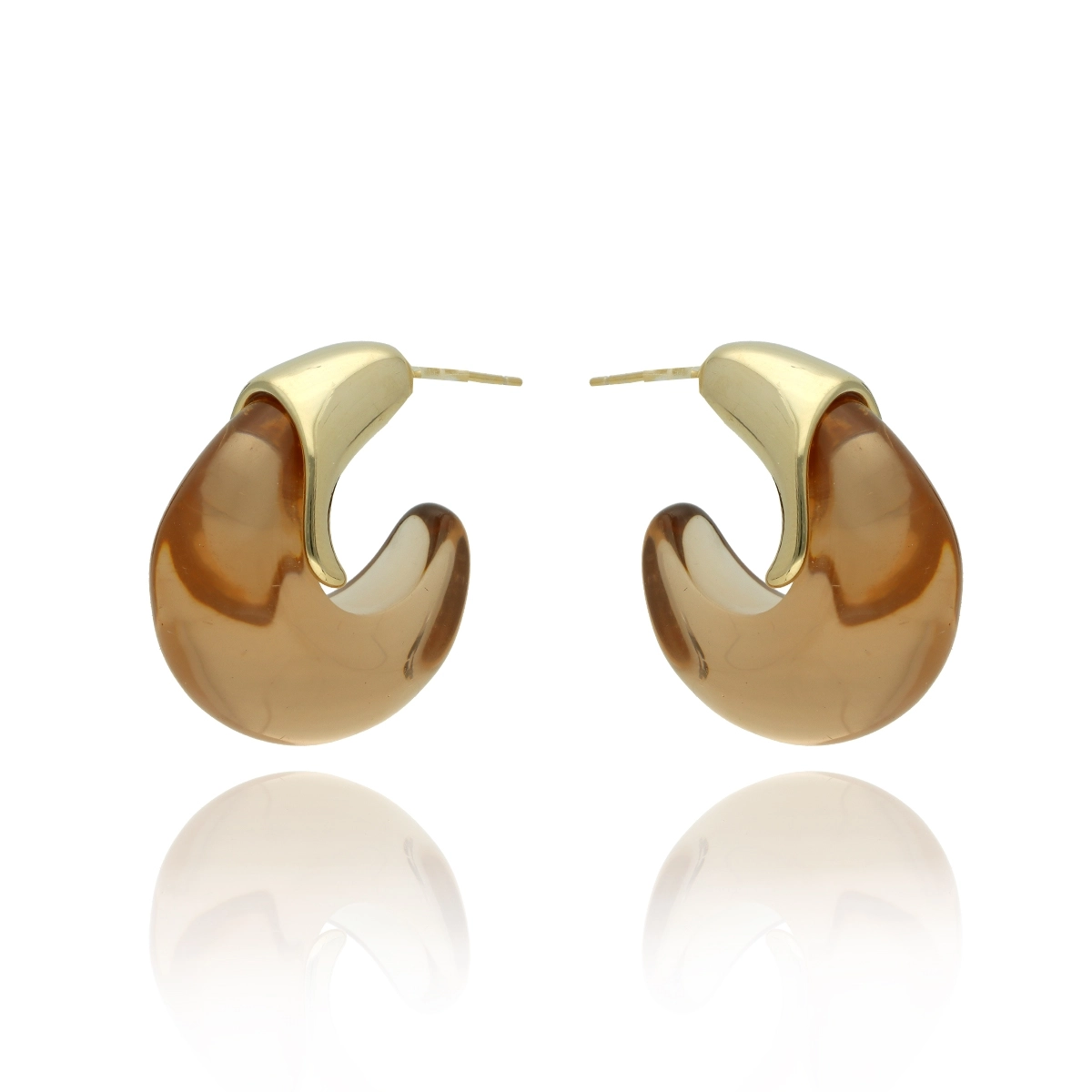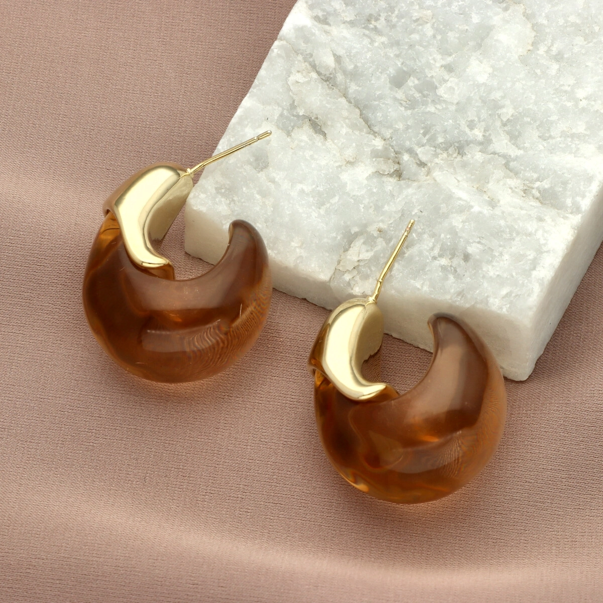 Nowoczesne kolczyki w formie modnych kropli, które zachwycają ciepłym, karmelowym odcieniem i subtelną transparentnością. Połączenie żywicy o głębokim, naturalnym kolorze ze złotym wykończeniem tworzy elegancki, a jednocześnie bardzo stylowy akcent.