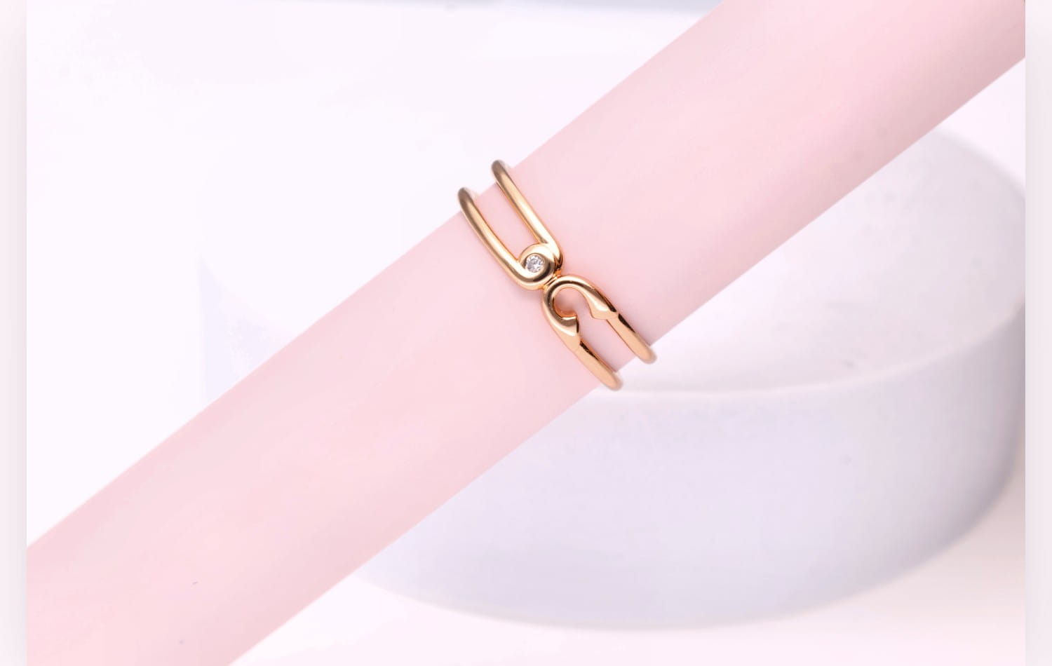 Podwójna obrączka sprawia, że pierścionek prezentuje się nietuzinkowo, zachowując jednocześnie lekkość formy. Subtelny detal w postaci kamienia pięknie odbija światło, co czyni go uniwersalnym dodatkiem – zarówno do codziennych stylizacji, jak i bardziej eleganckich zestawień.