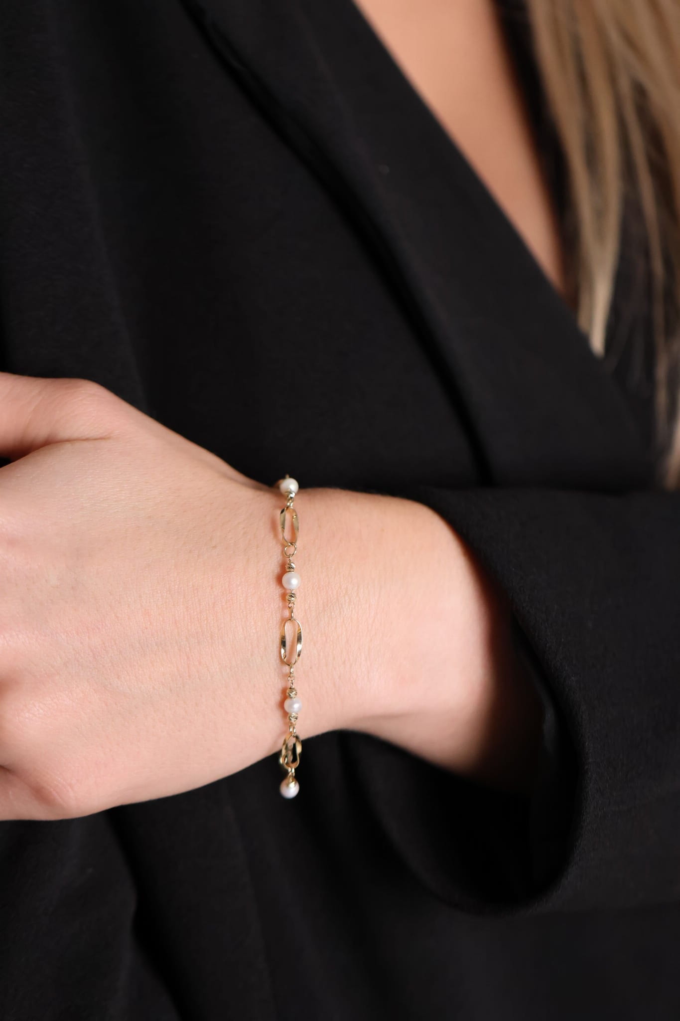 Bransoletka Amara to kwintesencja subtelnej elegancji. Jej projekt łączy delikatne, złote ogniwa z okrągłymi koralikami o perłowym blasku. Każdy element został precyzyjnie wykonany, aby stworzyć harmonię pomiędzy klasyką a nowoczesnym stylem.