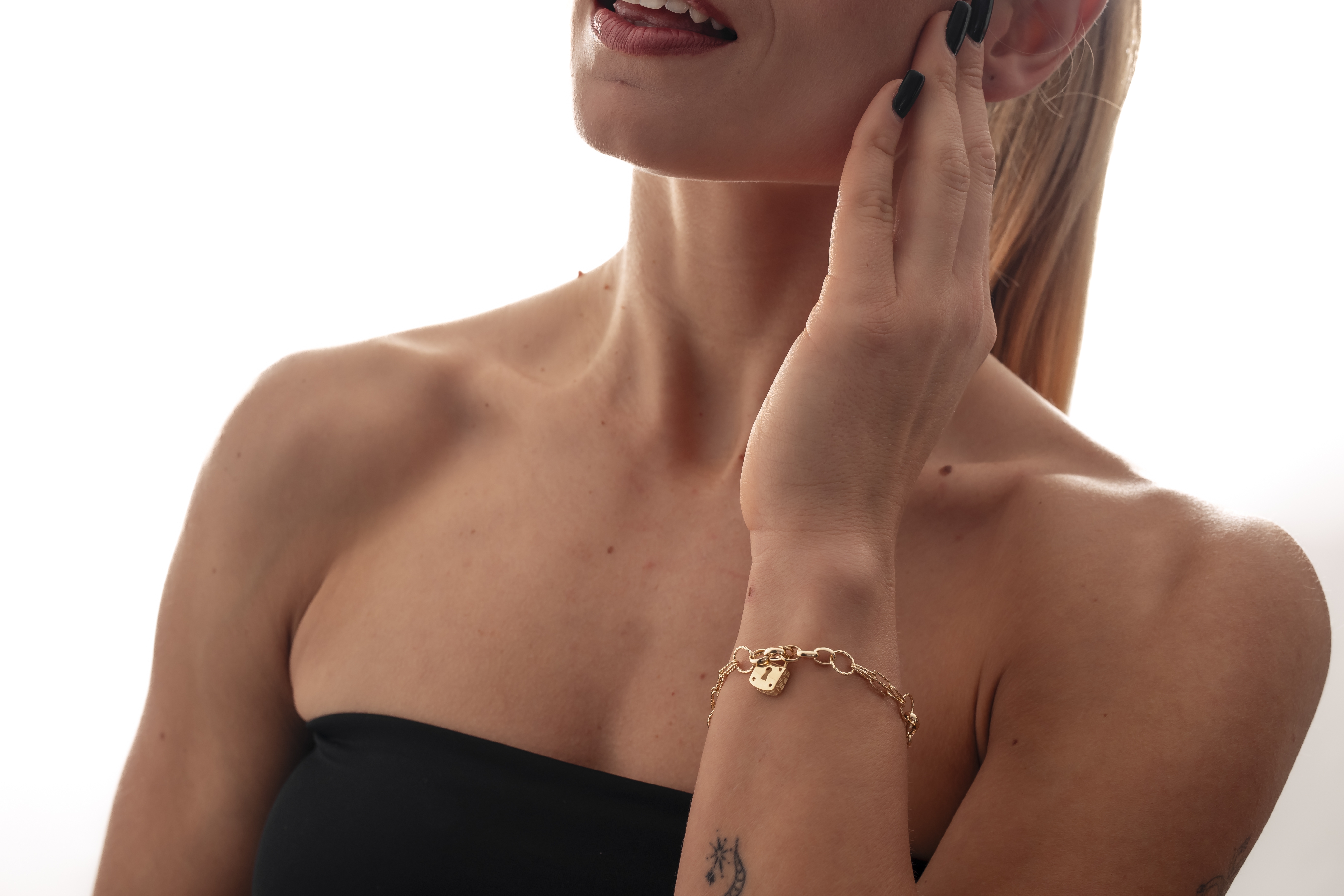 Bransoletka Lockelle to wyjątkowe połączenie subtelnej formy z wyrazistym detalem, który przyciąga uwagę. Motyw kłódki nadaje jej symbolicznego charakteru – może oznaczać więź, tajemnicę lub coś naprawdę osobistego. Zróżnicowane ogniwa tworzą nowoczesną kompozycję, dzięki czemu biżuteria wygląda lekko, ale jednocześnie bardzo stylowo. To model, który wyróżnia się na nadgarstku i dodaje charakteru każdej stylizacji. \