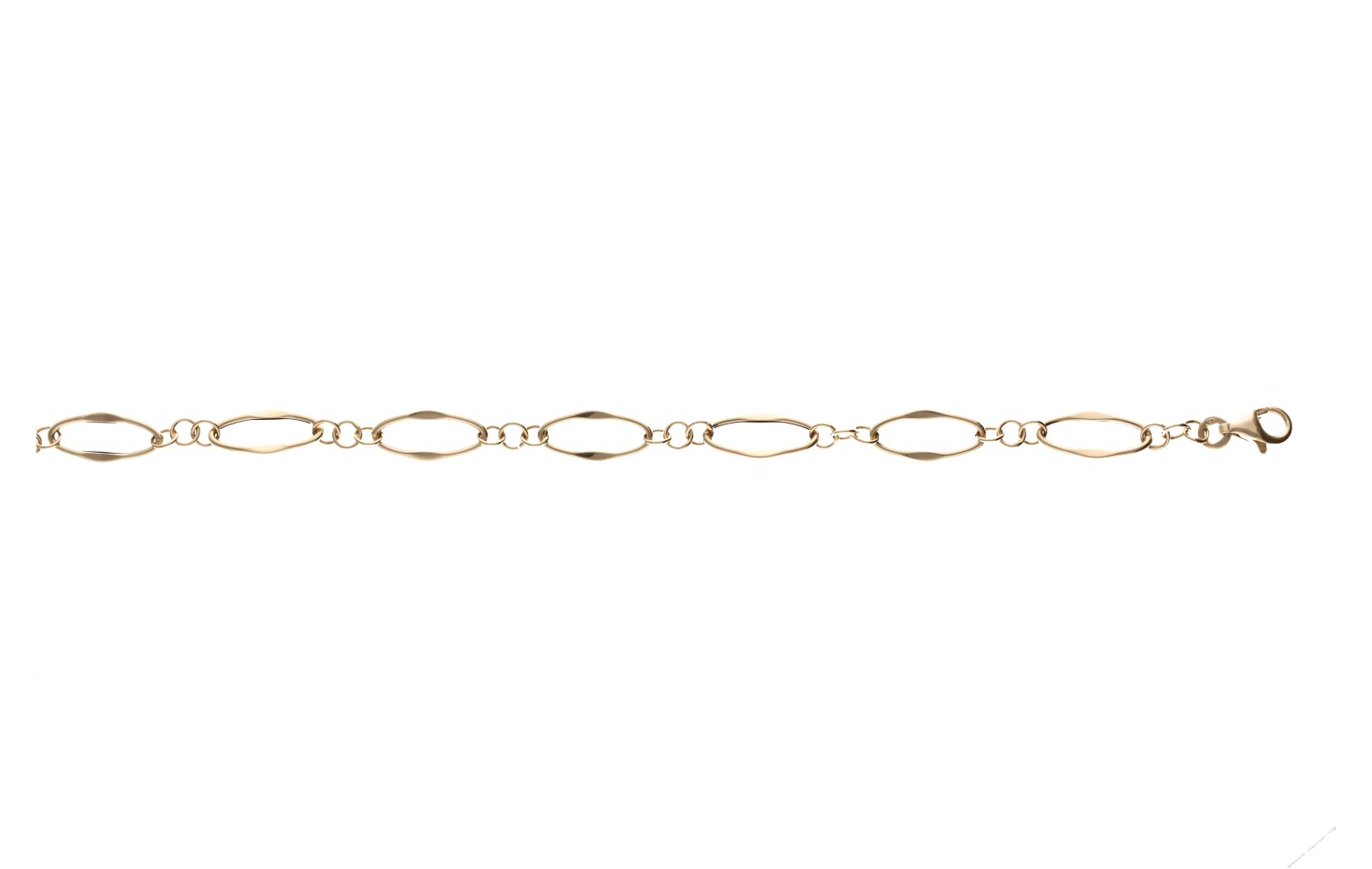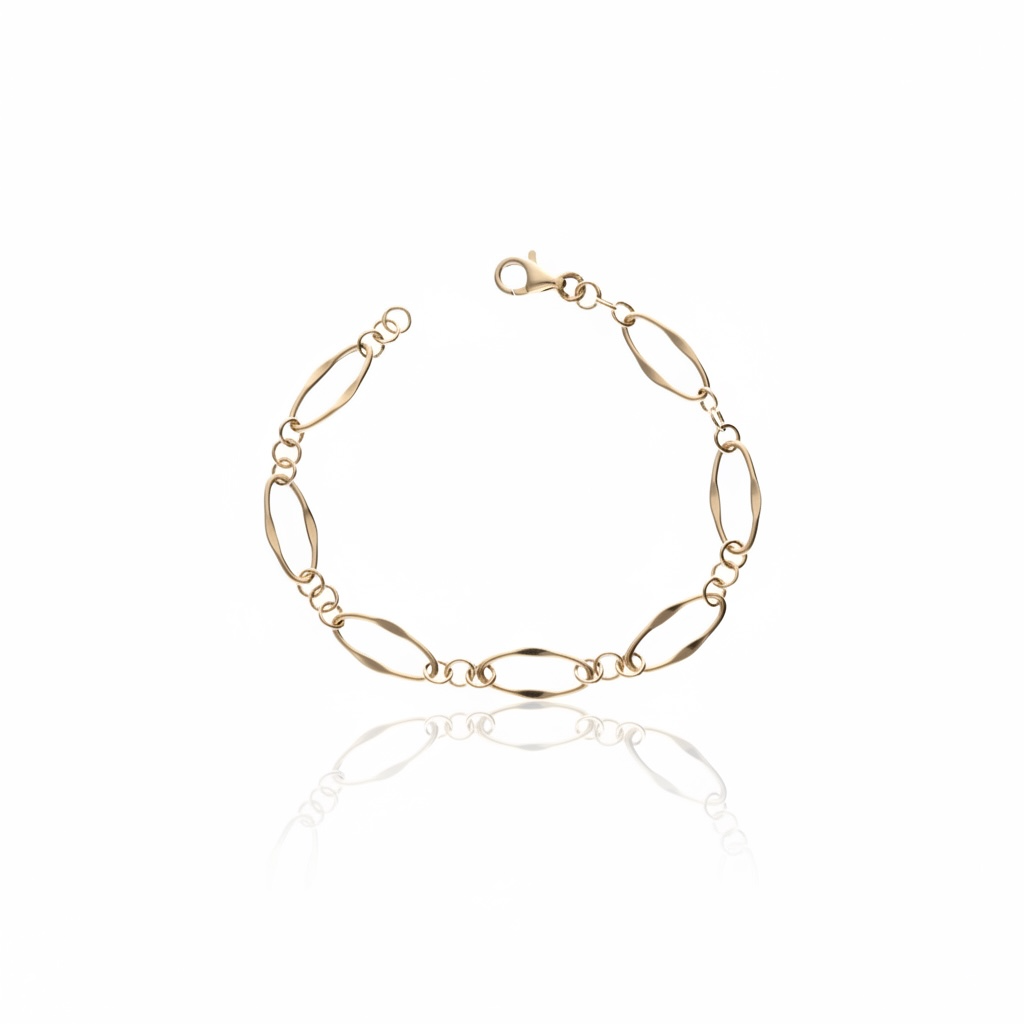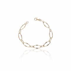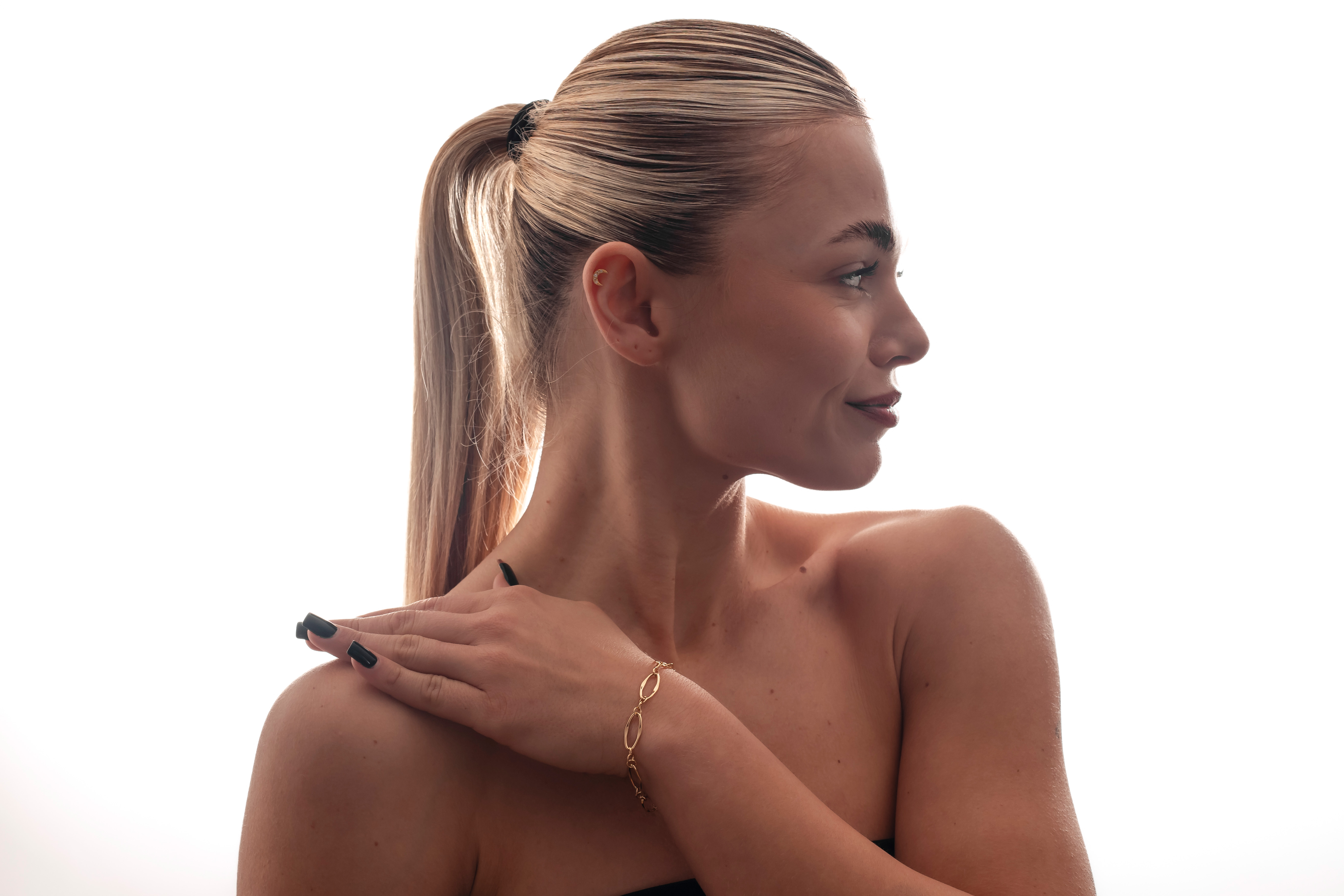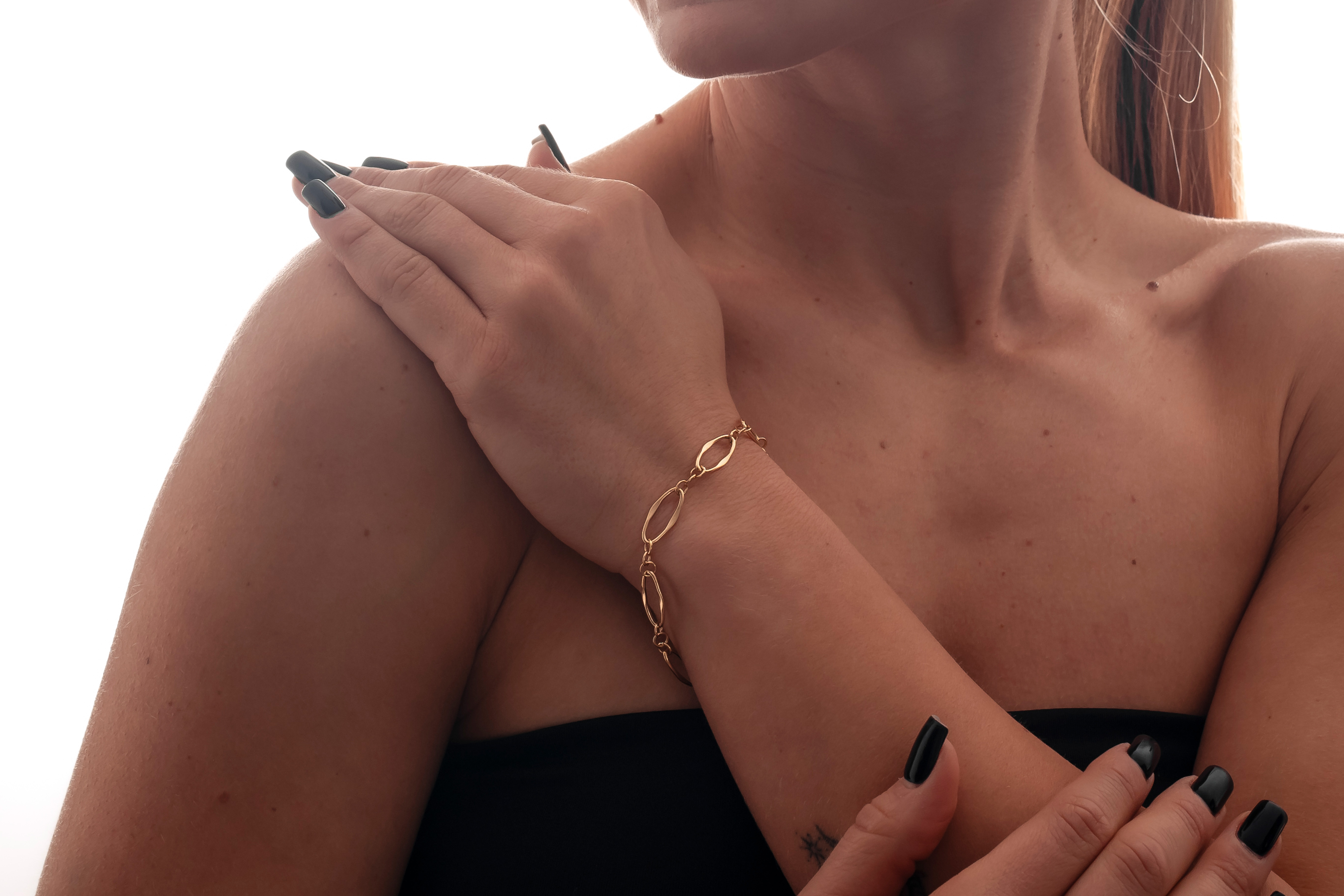 Złota bransoletka Ovalis wyróżnia się nowoczesnym designem opartym na wydłużonych, owalnych ogniwach, które nadają jej lekkości i elegancji. Minimalistyczna forma sprawia, że biżuteria prezentuje się niezwykle stylowo i ponadczasowo. To złota bransoletka 375, która doskonale wpisuje się w aktualne trendy delikatnej, geometrycznej biżuterii. Jej subtelna konstrukcja pięknie układa się na nadgarstku i przyciąga uwagę swoją prostotą. Świetnie komponuje się z innymi złotymi bransoletkami na rękę, tworząc modne zestawy warstwowe. To idealny wybór dla kobiet, które cenią nowoczesną elegancję i lekki, minimalistyczny styl. Ovalis to biżuteria, która podkreśla charakter stylizacji bez nadmiaru.