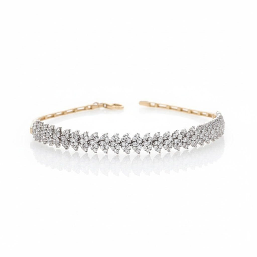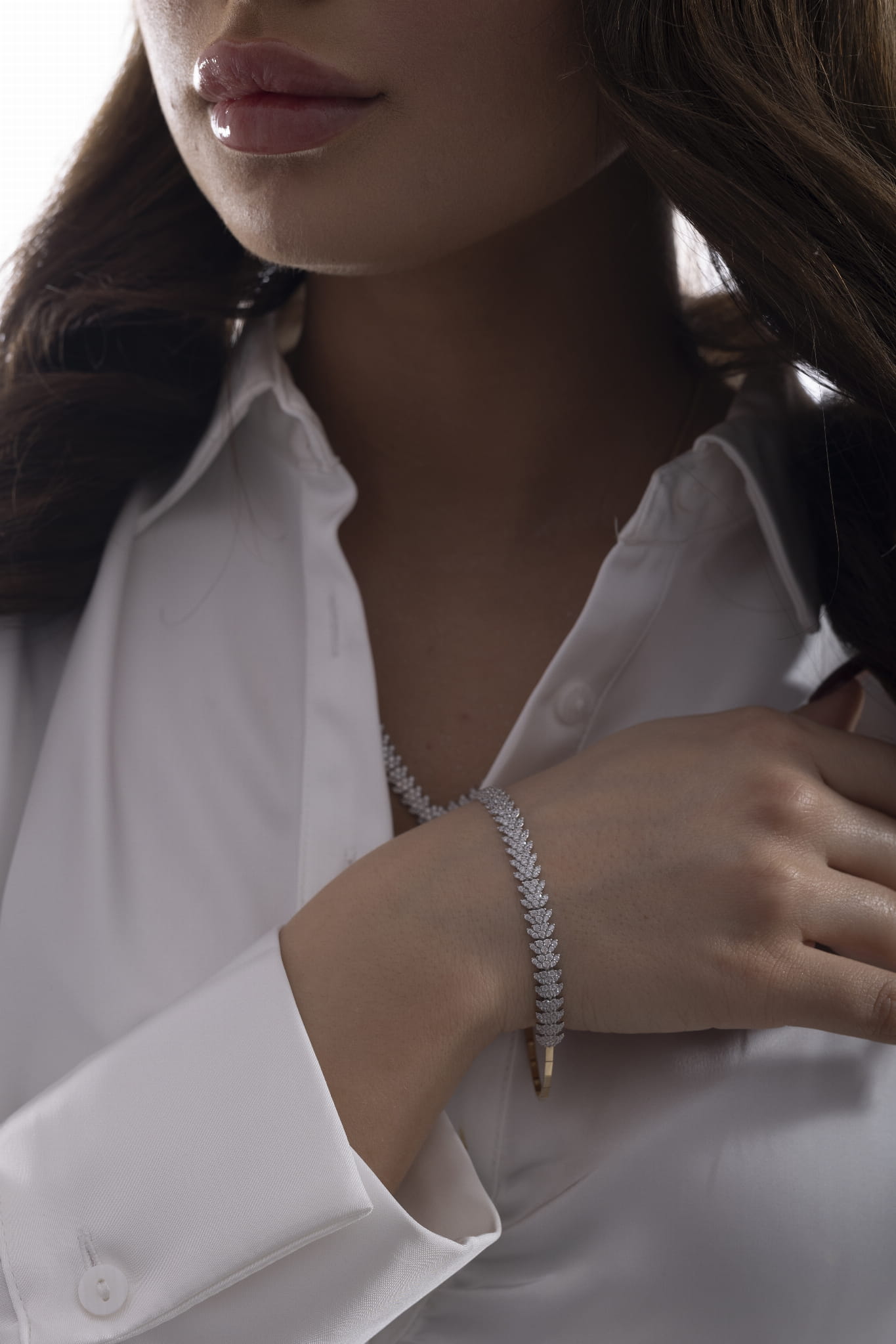 Bransoletka Stellara została zaprojektowana jako idealne dopełnienie naszyjnika z tej samej linii. Gęsto osadzone cyrkonie tworzą efekt intensywnego blasku, który pięknie odbija światło i przyciąga spojrzenia przy każdym ruchu dłoni. Smukła forma sprawia, że bransoletka prezentuje się bardzo elegancko, zachowując jednocześnie wyrazisty charakter.