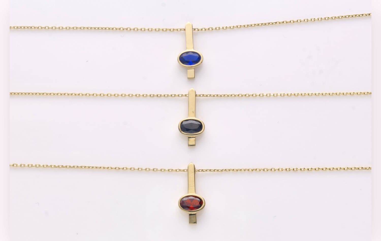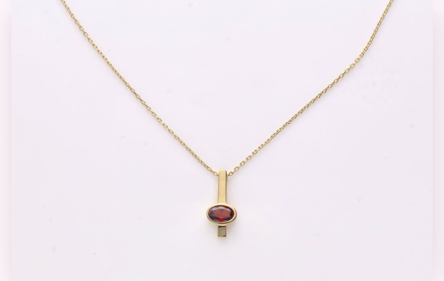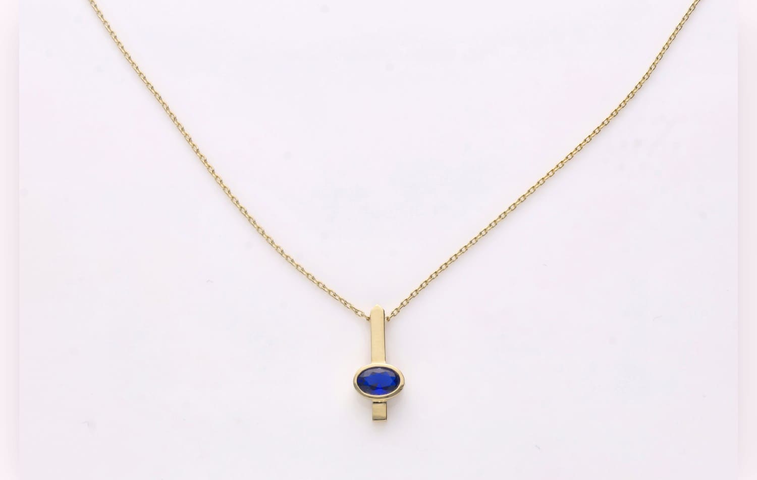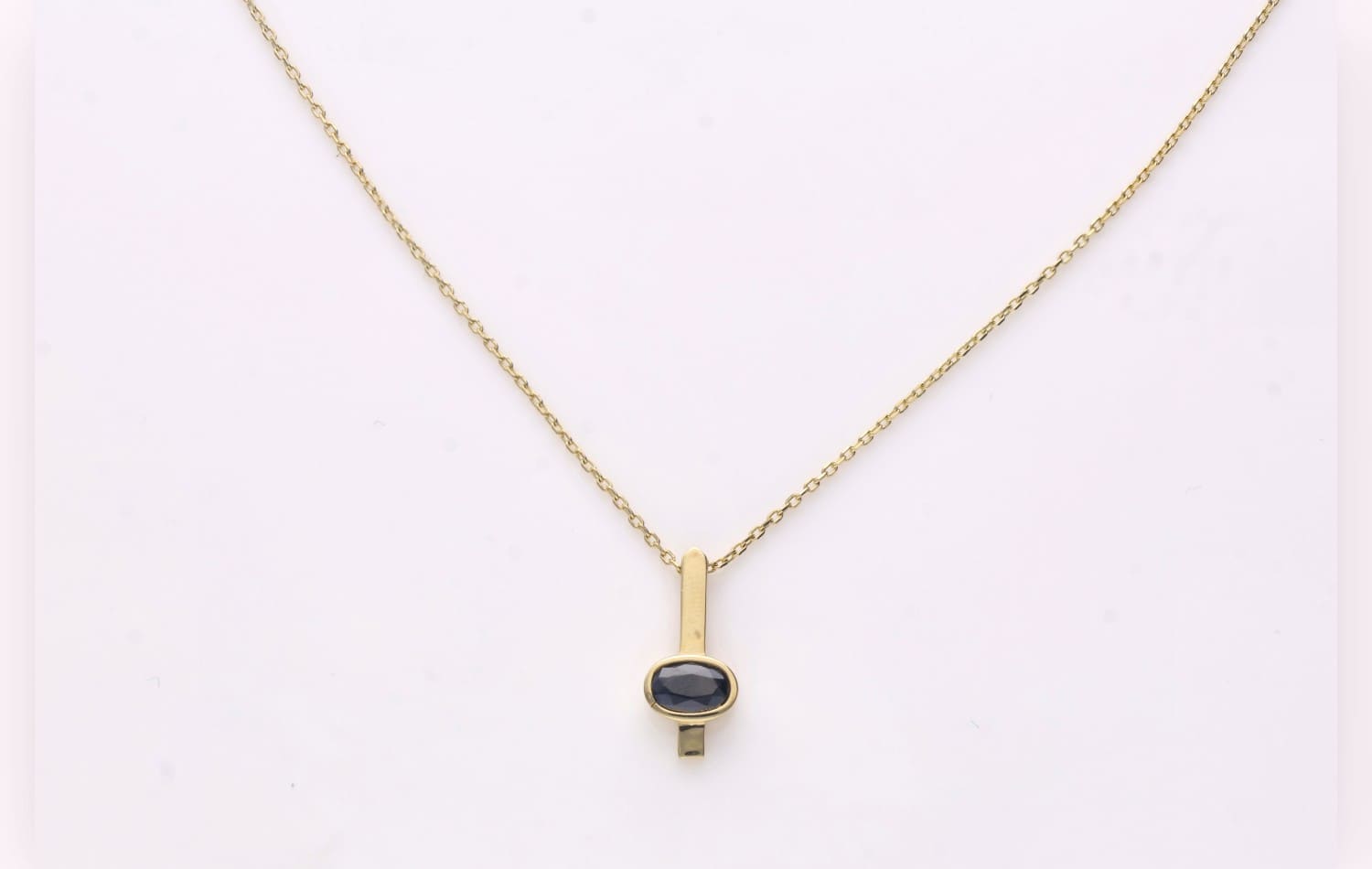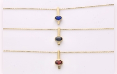 Sali – subtelna forma, wyrazisty charakter. Ten złoty naszyjnik to połączenie prostoty i głębi koloru. Delikatny, pionowy element harmonijnie łączy się z owalnym kamieniem, tworząc minimalistyczny, ale wyrazisty akcent.