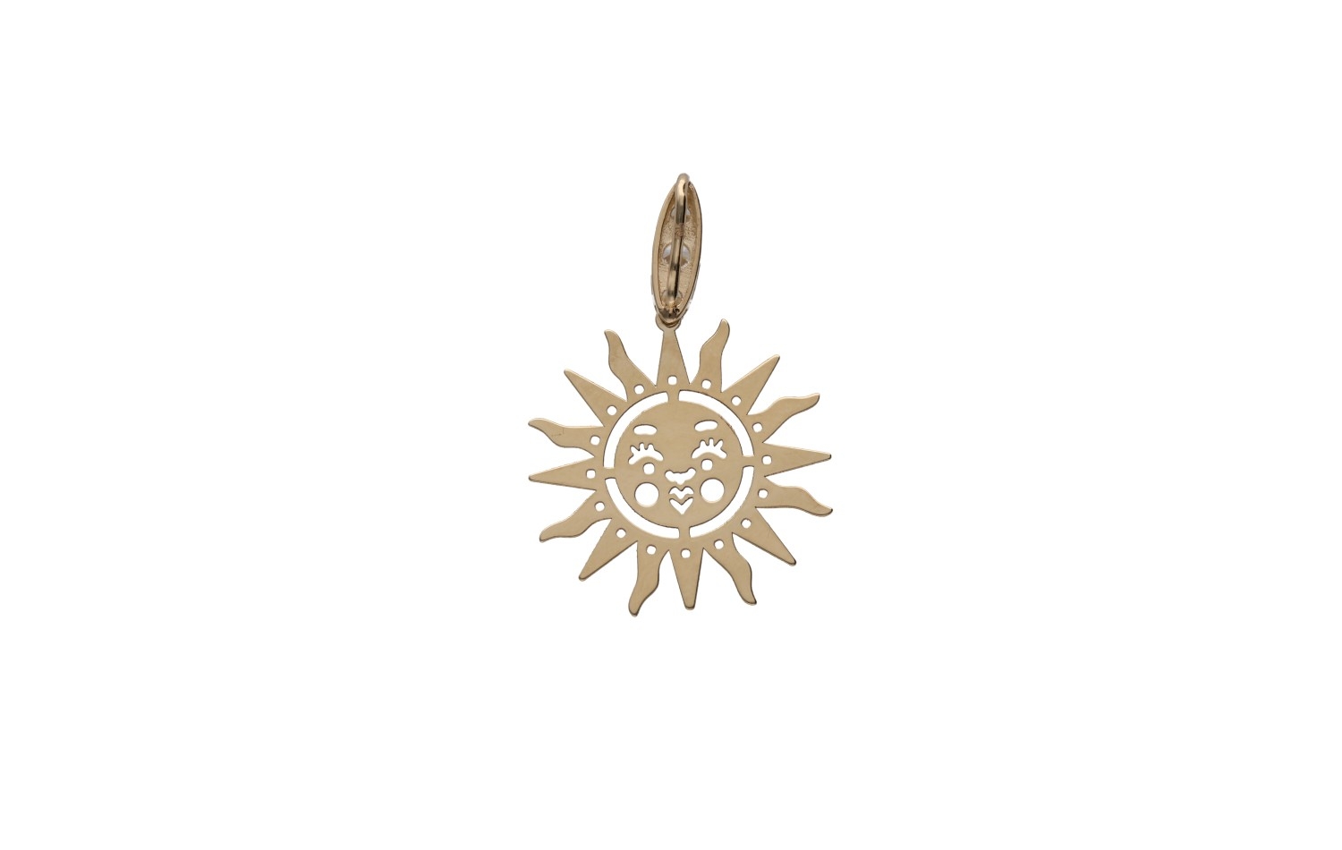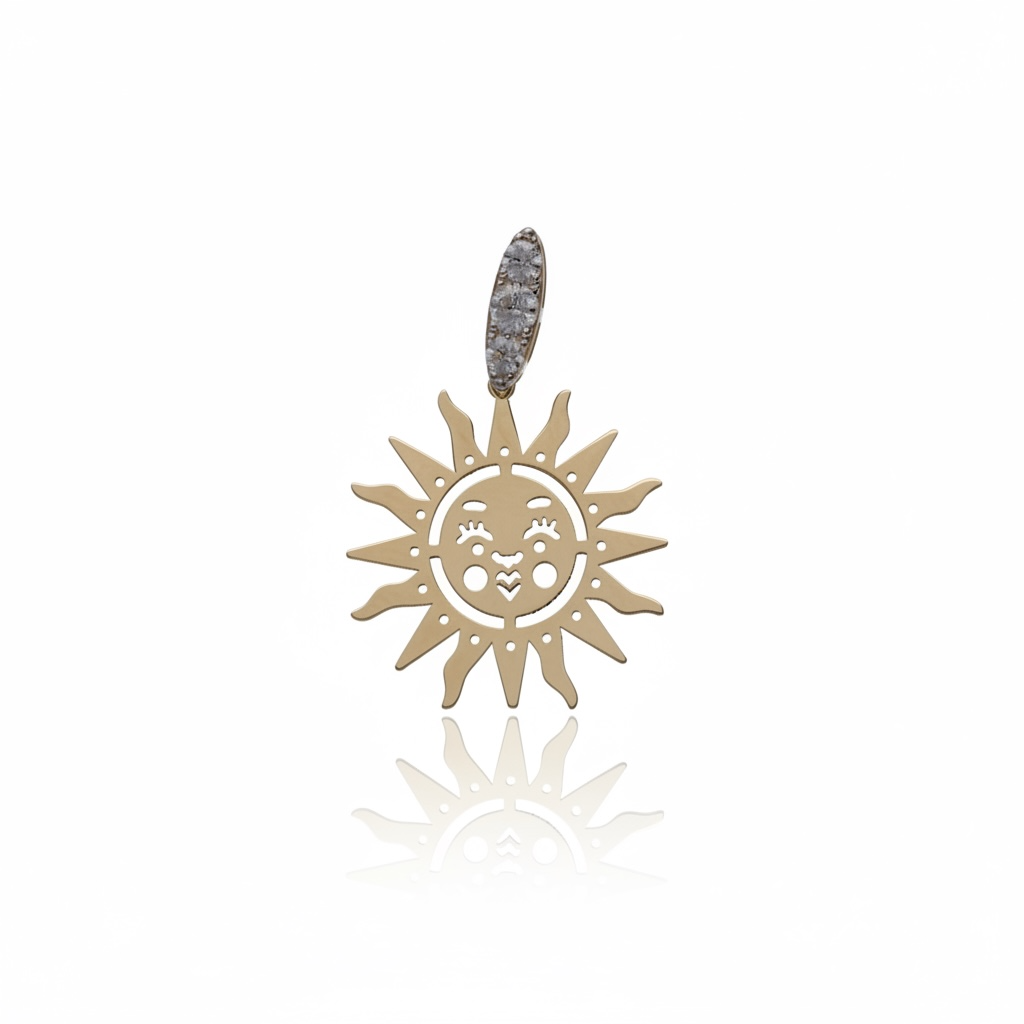Zawieszka Helia zachwyca symbolicznym motywem słońca i księżyca, tworząc wyjątkową kompozycję pełną równowagi i subtelnej energii. Ażurowa forma nadaje jej lekkości, a promieniste detale pięknie odbijają światło, podkreślając złoty blask. Wyrazisty, a jednocześnie delikatny design sprawia, że zawieszka przyciąga uwagę i wyróżnia się na tle klasycznych wzorów. To model, który łączy w sobie znaczenie i estetykę w nowoczesnym wydaniu. Helia dodaje biżuterii charakteru i wyjątkowego klimatu.