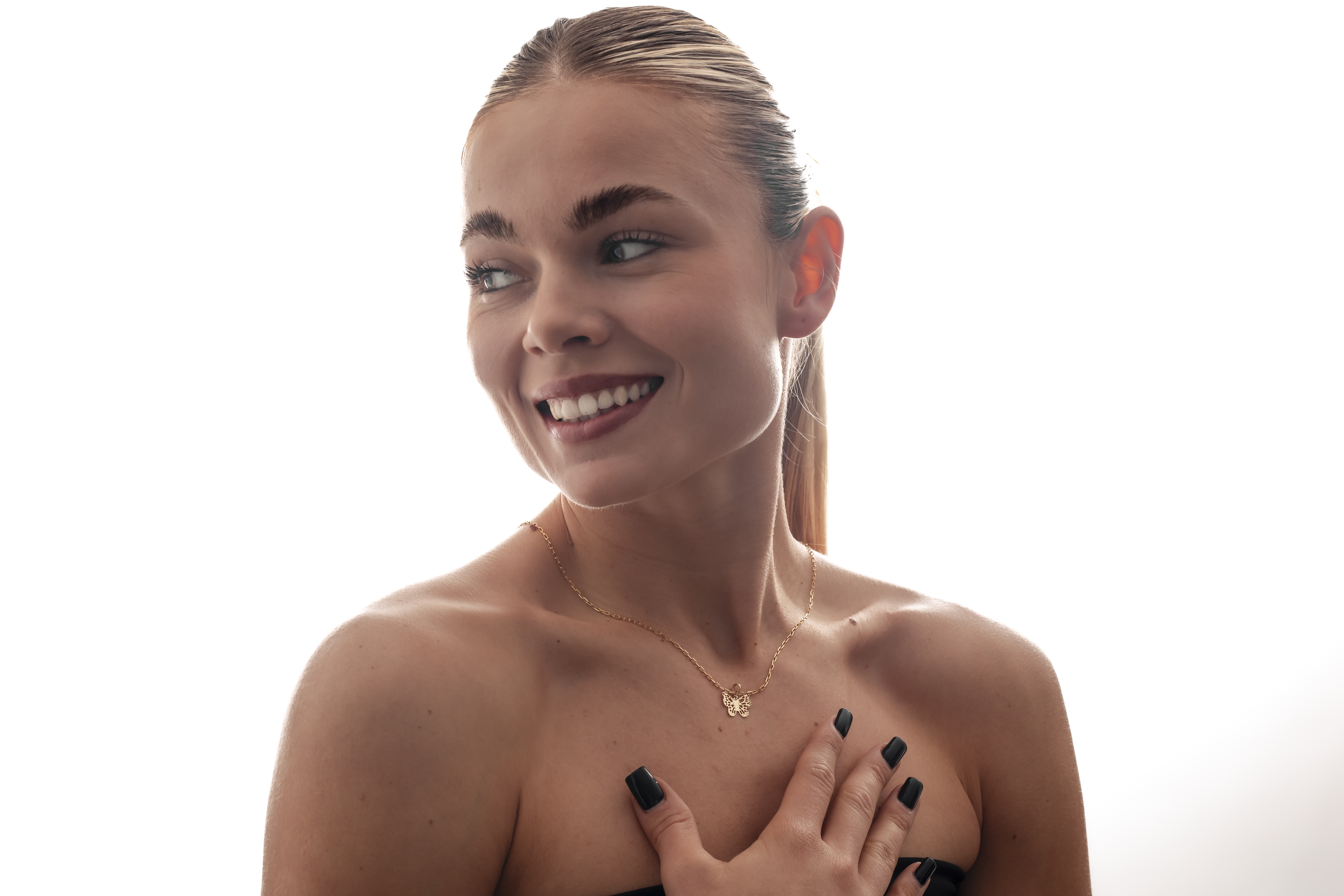 Złota zawieszka Luma w kształcie motyla to symbol lekkości, przemiany i subtelnej elegancji. Ażurowe skrzydła nadają jej wyjątkowej delikatności, a kontrastowe wykończenie podkreśla nowoczesny charakter biżuterii. To złota zawieszka 375, która przyciąga spojrzenia swoją formą i lekkością. Doskonale komponuje się z cienkim łańcuszkiem, tworząc minimalistyczny, ale wyrazisty akcent. Motyw motyla dodaje całości kobiecego uroku i ponadczasowego znaczenia. Idealna dla kobiet, które cenią symboliczną biżuterię i subtelne detale. Luma to złota biżuteria, która podkreśla styl i dodaje lekkości każdej stylizacji.