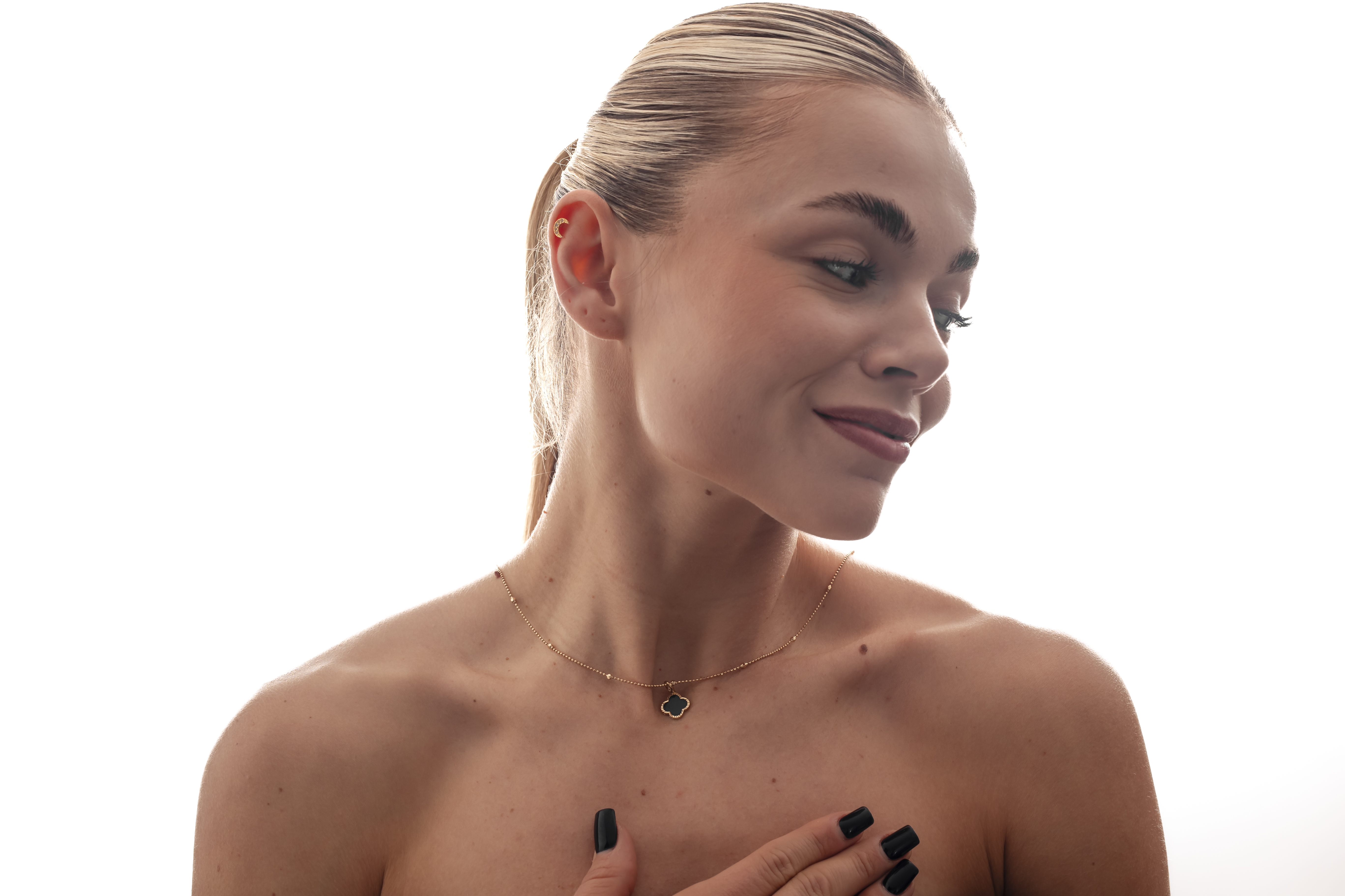 Złota zawieszka Nera przyciąga uwagę głęboką, czarną powierzchnią zestawioną z ciepłym odcieniem złota. Motyw koniczyny nadaje jej subtelnej elegancji i ponadczasowego charakteru. To złota zawieszka 375, która idealnie wpisuje się w minimalistyczne, a jednocześnie wyraziste stylizacje. Delikatnie zdobione krawędzie dodają jej lekkości i podkreślają precyzję wykonania. Świetnie prezentuje się solo, ale również w połączeniu z inną złotą biżuterią. To doskonały wybór dla kobiet, które cenią prostotę z nutą luksusu. Nera podkreśla styl i dodaje każdej stylizacji eleganckiego akcentu.