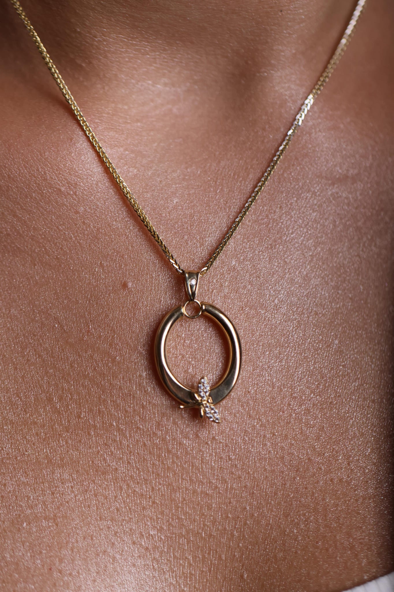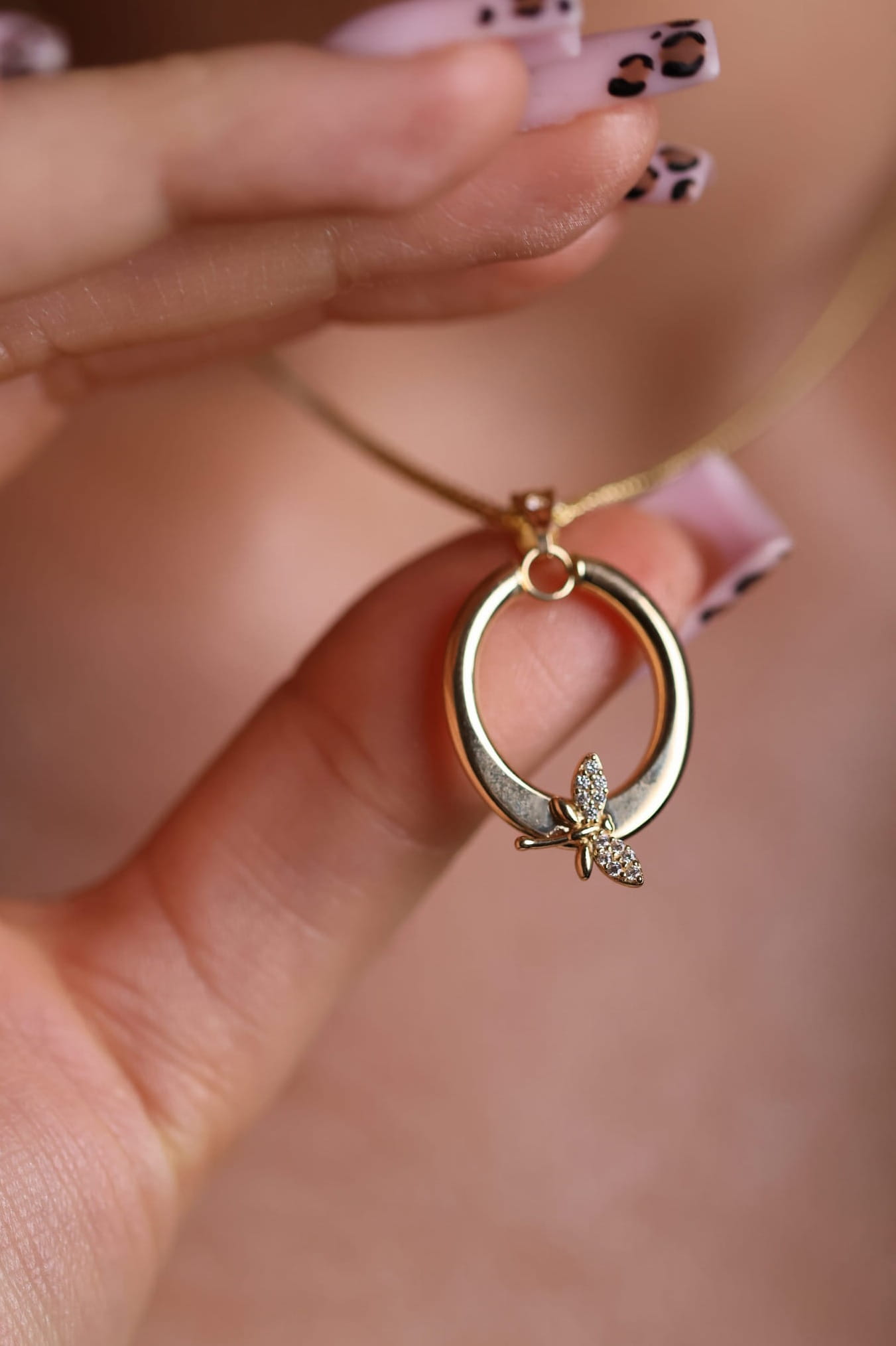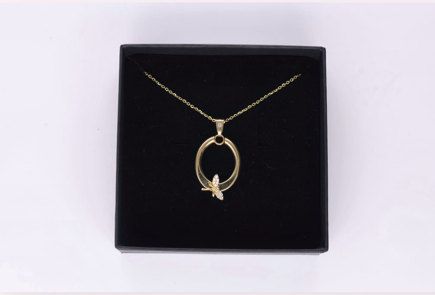 Zawieszka Slow to subtelne połączenie elegancji i spokoju, symbolizujące harmonię oraz piękno natury. Gładki, złoty owal tworzy minimalistyczną, ponadczasową formę, którą zdobi delikatny motyl wysadzany cyrkoniami. Jego skrzydła lśnią subtelnym blaskiem, dodając zawieszce lekkości i wdzięku.