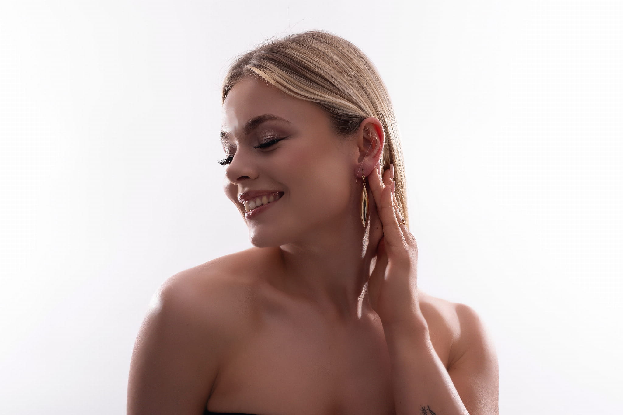 Kolczyki Blade zachwycają smukłą, wydłużoną formą inspirowaną kształtem liścia lub świetlistego ostrza. Ich minimalistyczna linia nadaje stylizacji nowoczesnego i zdecydowanego charakteru. Gładka, lustrzana powierzchnia subtelnie odbija światło, tworząc elegancką grę refleksów przy każdym ruchu. To model o rzeźbiarskim wyrazie, w którym siłą jest czysta forma i proporcja. Blade pięknie podkreślają linię szyi, dodając sylwetce lekkości. Sprawdzą się jako wyrazisty akcent w prostych, dopracowanych stylizacjach.