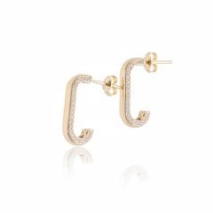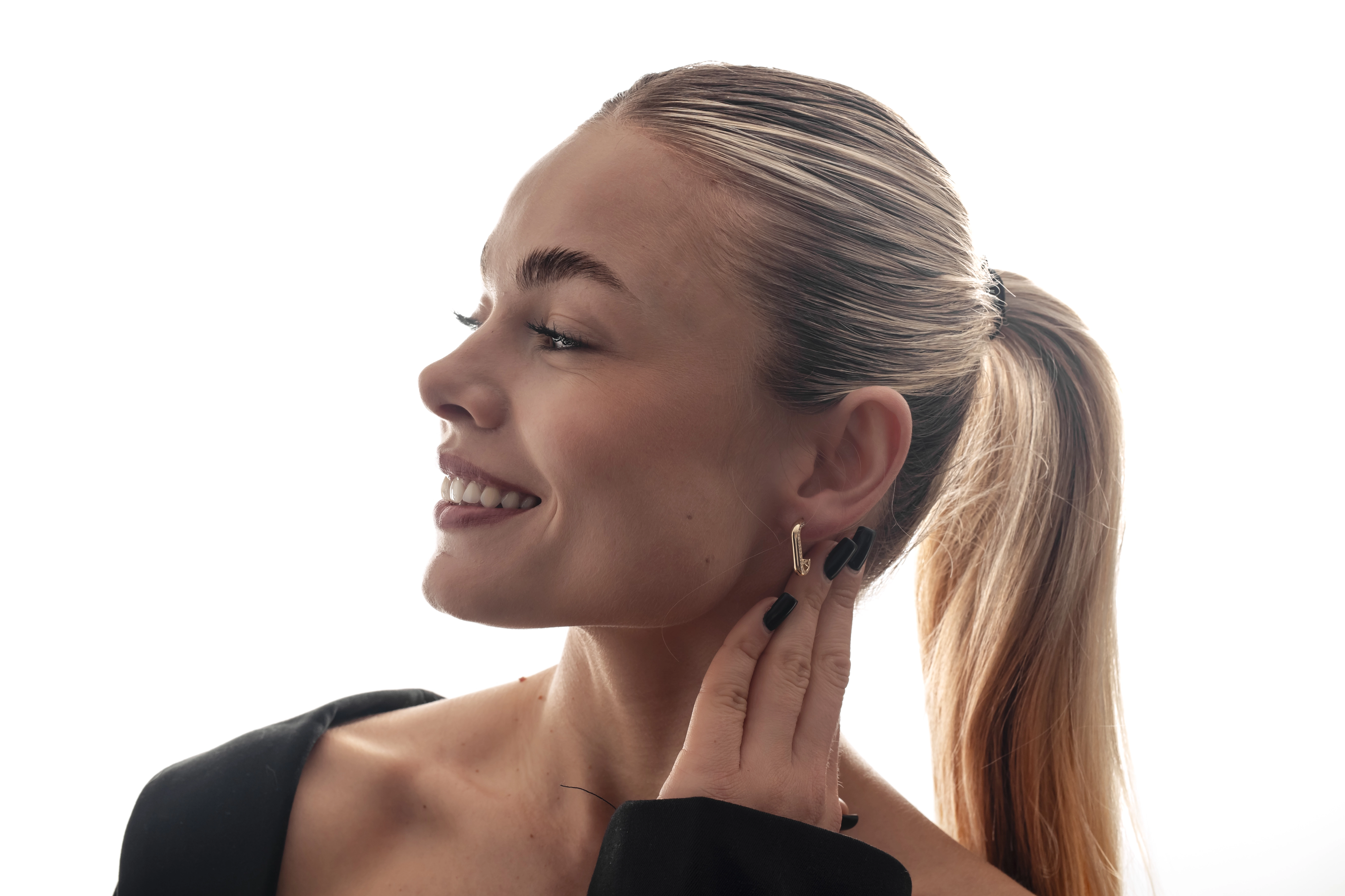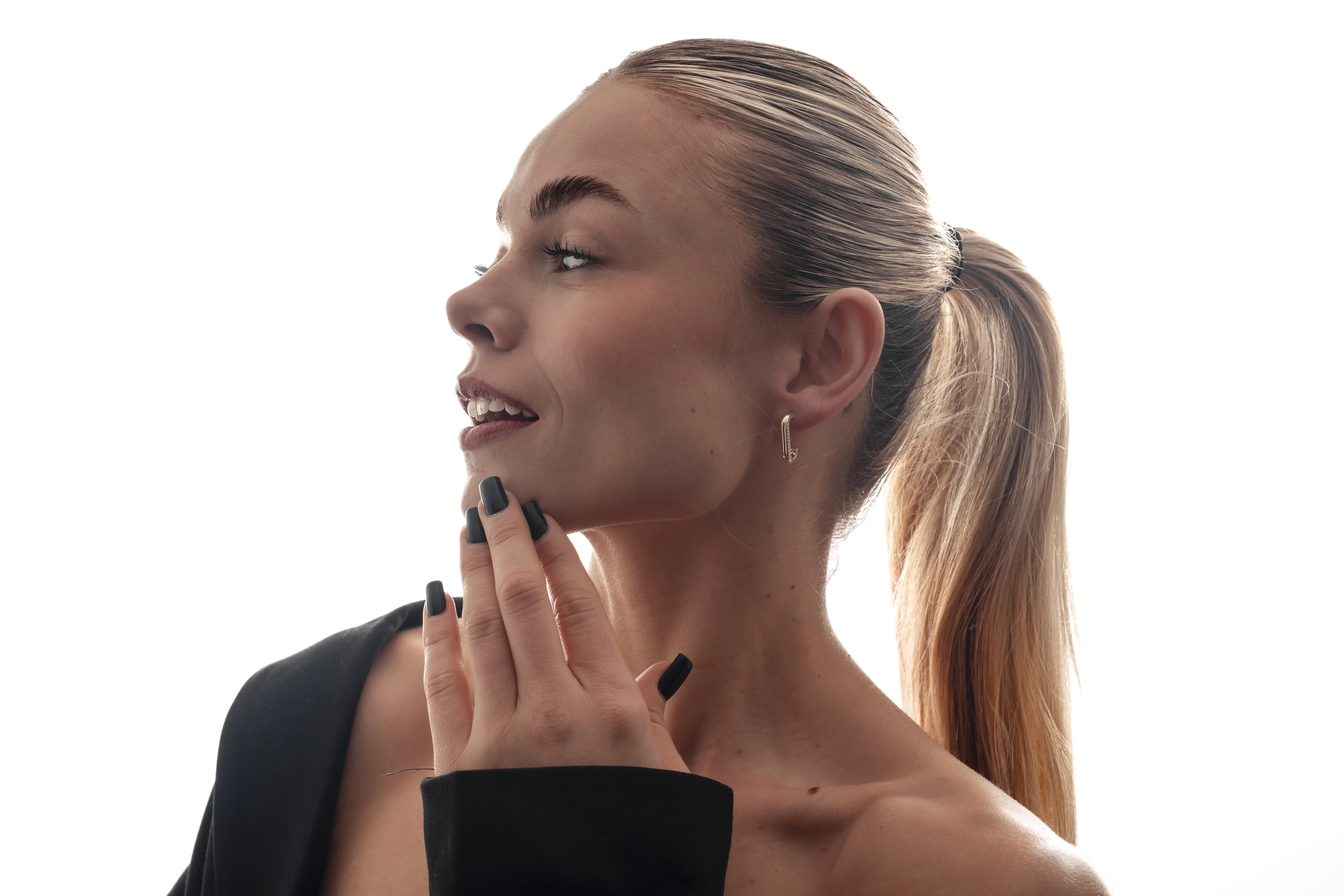 Kolczyki Kim wyróżniają się nowoczesną, geometryczną formą w kształcie subtelnie zaokrąglonej litery „C”. Delikatna linia wysadzana lśniącymi kamieniami pięknie podkreśla kształt kolczyków i dodaje im eleganckiego blasku. Ich minimalistyczny, a zarazem wyrazisty design sprawia, że doskonale podkreślają rysy twarzy i przyciągają spojrzenia. To model, który łączy nowoczesność z ponadczasową elegancją. Kim świetnie sprawdzą się jako stylowy akcent zarówno w codziennych, jak i bardziej eleganckich stylizacjach.
