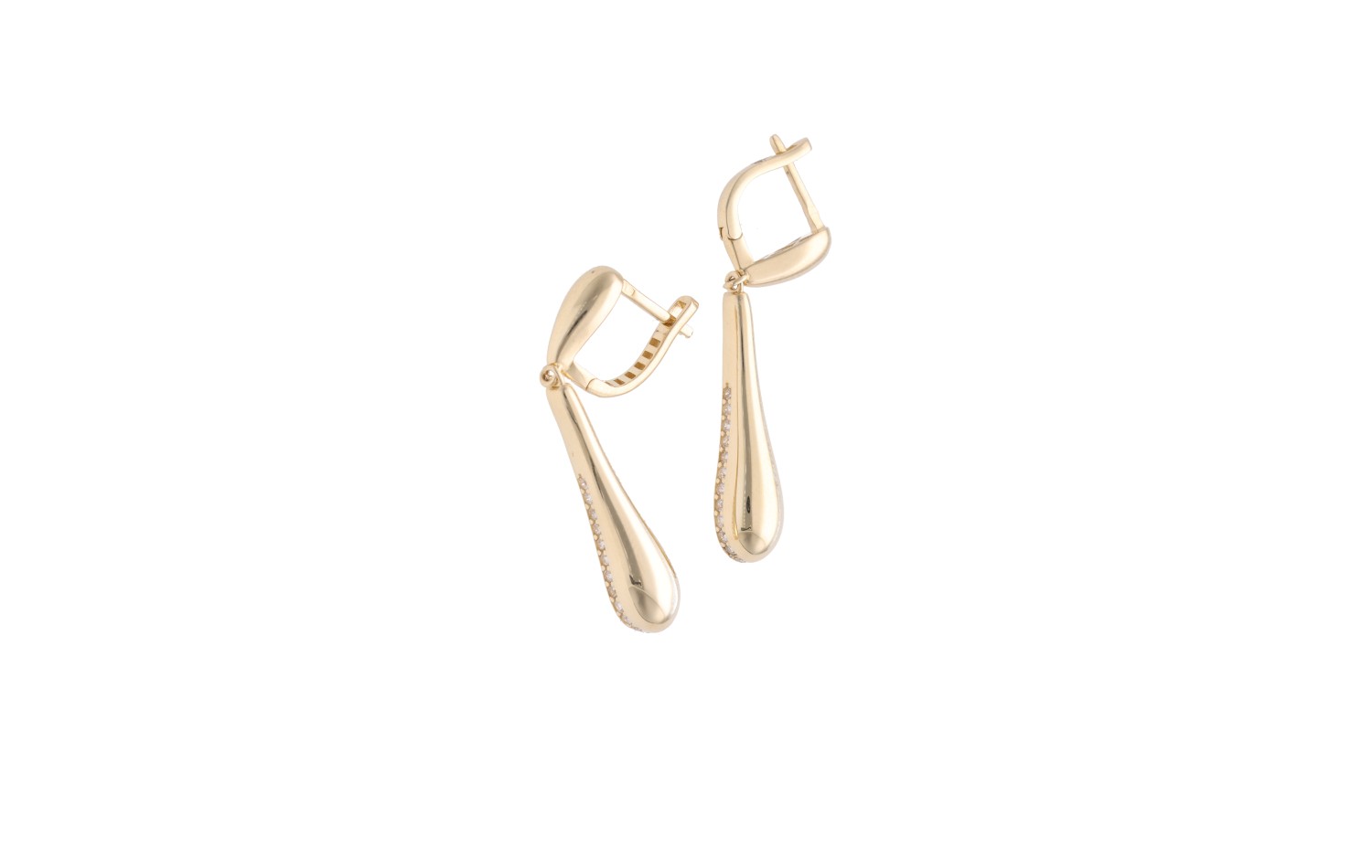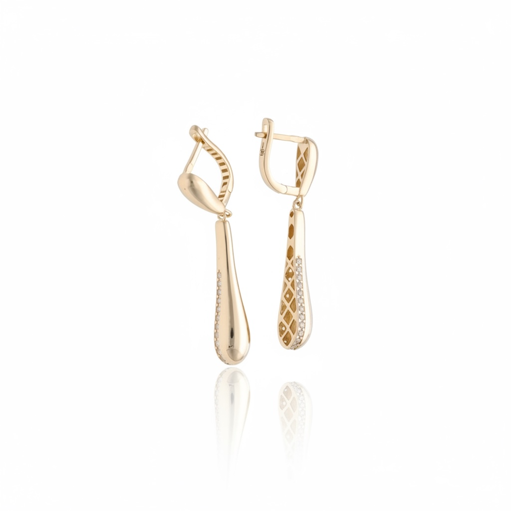 Kolczyki Koral zachwycają smukłą, wydłużoną formą, która delikatnie podkreśla linię szyi i dodaje sylwetce lekkości. Ich opływowy kształt został wzbogacony subtelnym rzędem lśniących kamieni, które pięknie odbijają światło przy każdym ruchu. Połączenie gładkiej, złotej powierzchni z delikatnym blaskiem nadaje biżuterii elegancki i nowoczesny charakter. To model, który przyciąga uwagę swoją prostotą i wyrafinowaniem. Koral doskonale sprawdzą się jako stylowy akcent, dodający klasy każdej stylizacji.