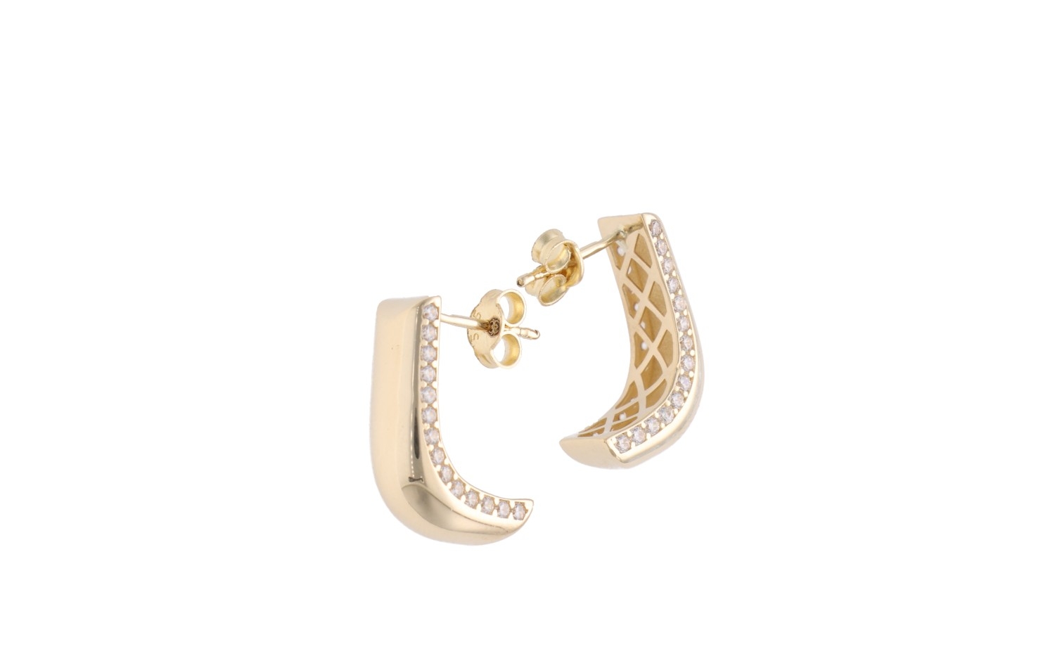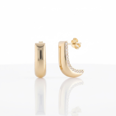 Kolczyki Kylie wyróżniają się kompaktową, zaokrągloną formą, która subtelnie otula ucho i nadaje stylizacji nowoczesnej elegancji. Ich gładka, złota powierzchnia została uzupełniona delikatnym rzędem lśniących kamieni, które dodają całości subtelnego blasku. Prosty, ale dopracowany design sprawia, że kolczyki prezentują się niezwykle stylowo i ponadczasowo. To model idealny dla osób ceniących minimalizm w eleganckim wydaniu. Kylie doskonale podkreślają codzienny look, dodając mu klasy i wyrafinowania.