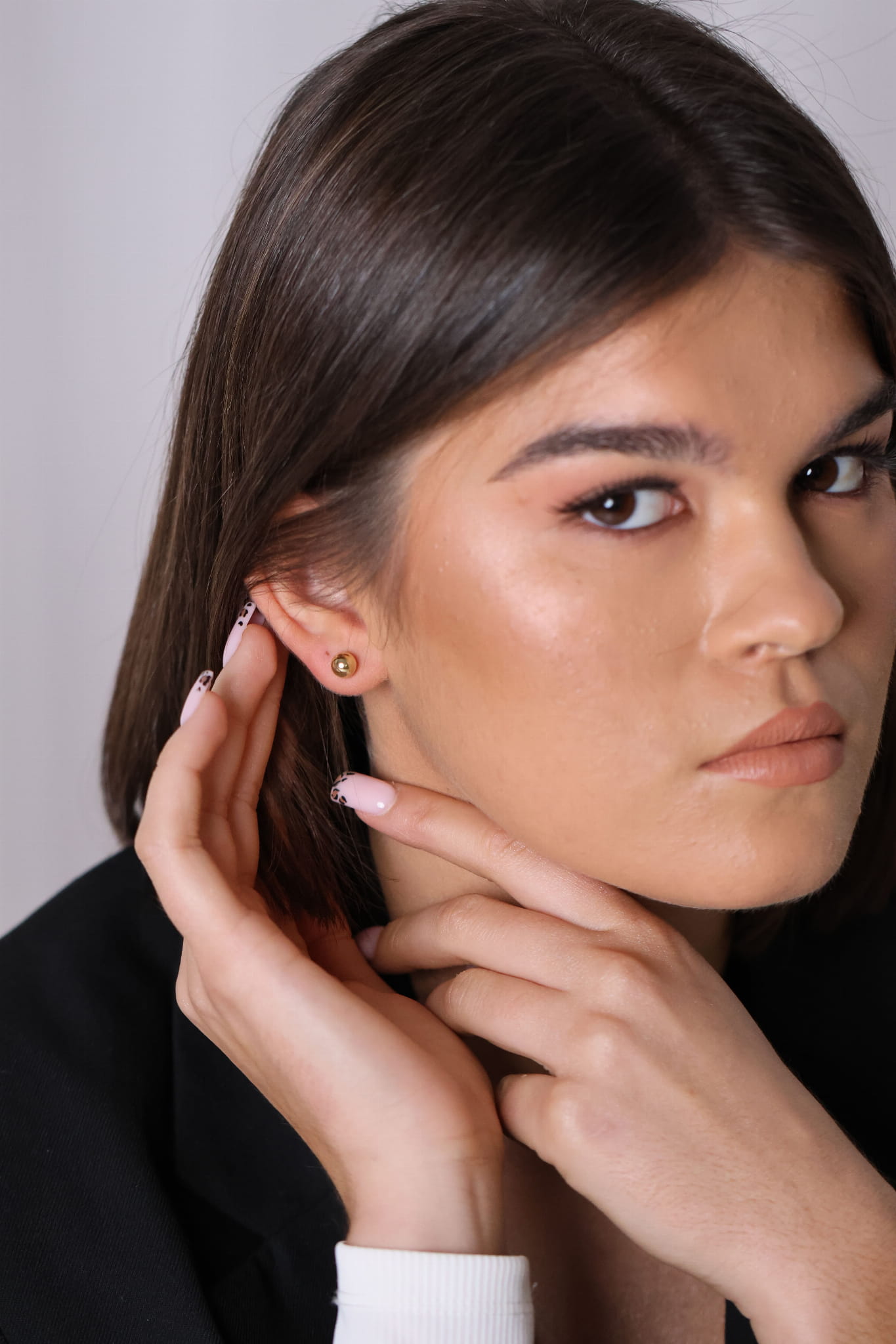 Kolczyki Lili to kwintesencja czystej, minimalistycznej formy zamkniętej w idealnie gładkiej kuli. Ich proporcje sprawiają, że prezentują się subtelnie, a jednocześnie niezwykle szlachetnie. Złota powierzchnia delikatnie odbija światło, nadając twarzy miękki, elegancki blask. To model, który zachwyca prostotą i ponadczasowym charakterem. Lili doskonale podkreślają styl bez potrzeby dodatkowych akcentów – są dyskretne, ale zauważalne. Lekka konstrukcja zapewnia pełen komfort noszenia przez cały dzień.