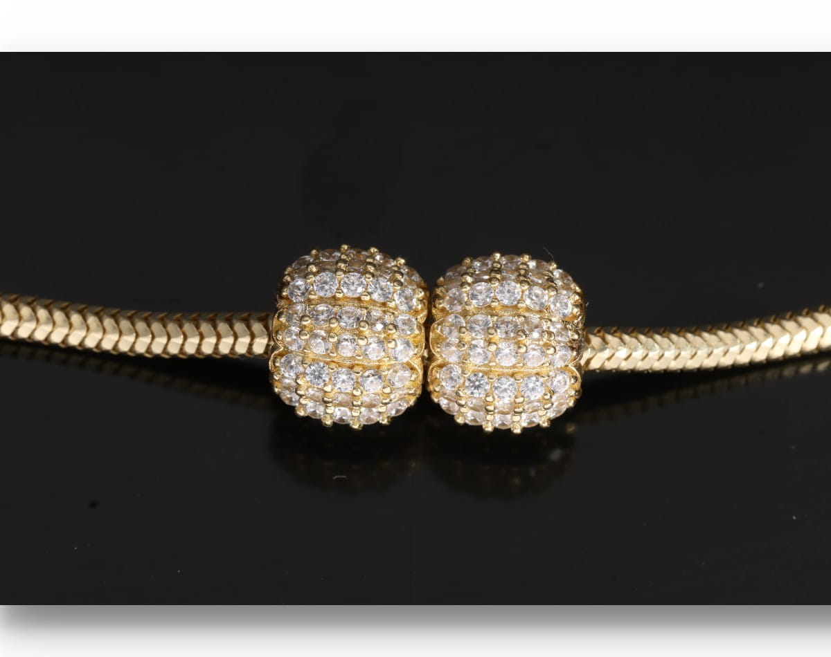 Charms Cindy to wyjątkowy element, który wniesie odrobinę luksusu do Twojej kolekcji biżuterii. Jego okrągły kształt ozdobiony został misternymi rzędami cyrkonii, które lśnią w każdym świetle, nadając mu elegancki i ponadczasowy charakter.
