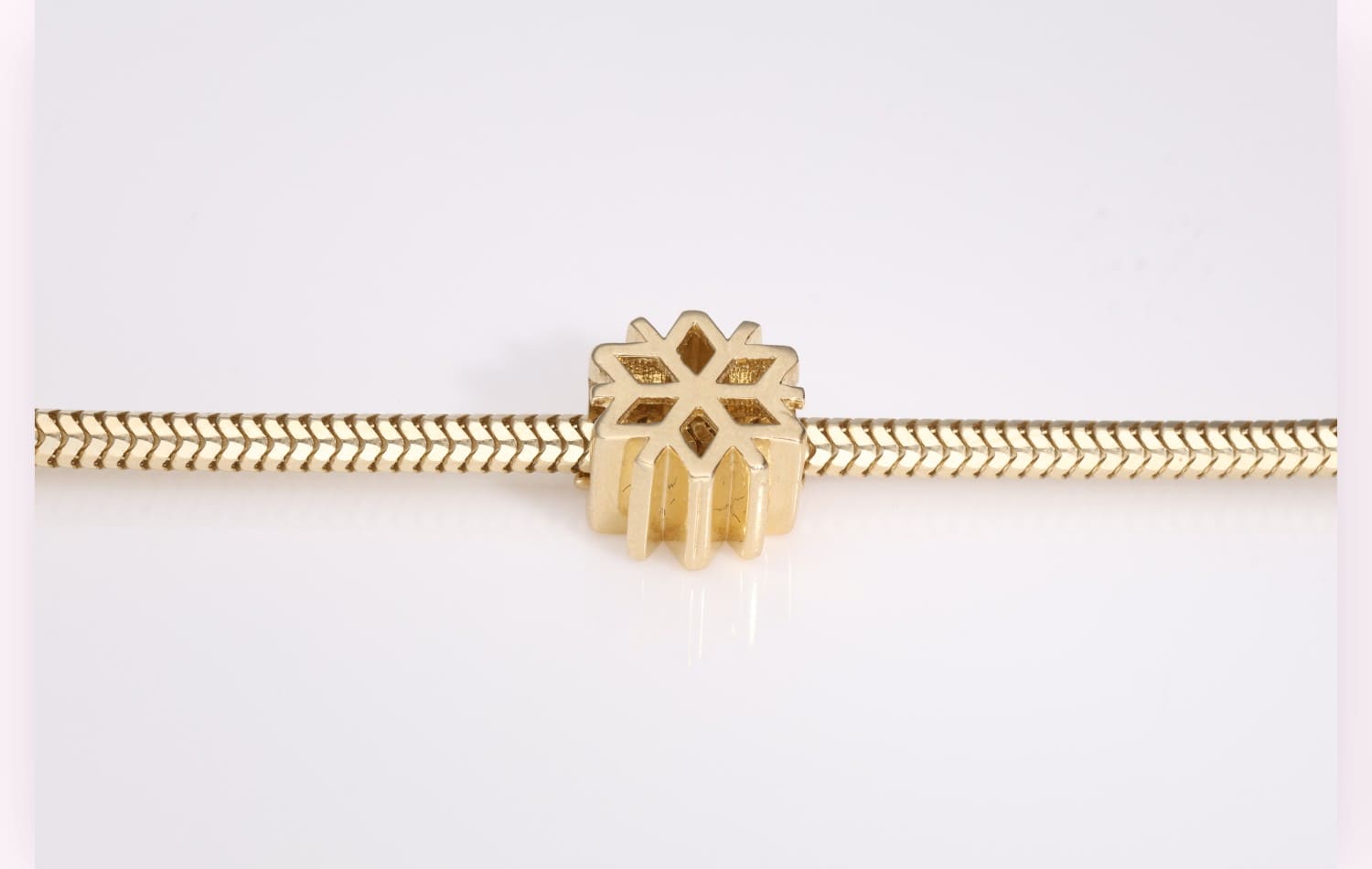 Charms Snow to wyjątkowy element biżuterii, który przenosi nas w magiczny świat zimy. Delikatny, złoty płatek śniegu symbolizuje piękno, unikalność i harmonię natury, tworząc subtelny dodatek do Twojej bransoletki.