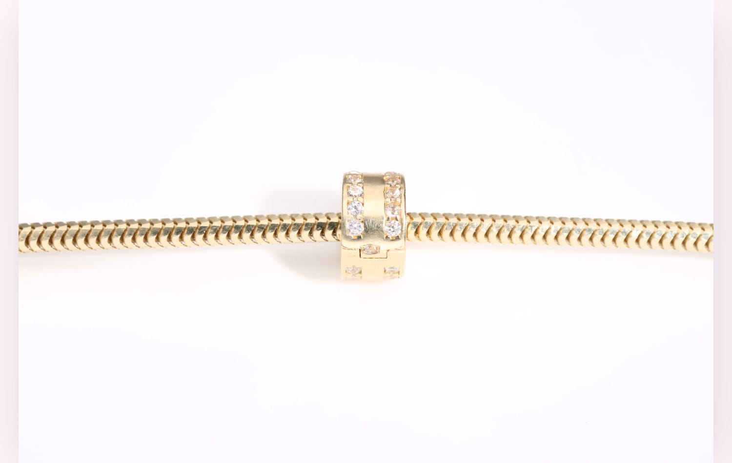 Charms Stoper to połączenie funkcjonalności i ponadczasowego stylu. Jego cylindryczna forma ozdobiona iskrzącymi kamieniami sprawia, że biżuteria zyskuje wyjątkowy blask, a bransoletka pozostaje perfekcyjnie ułożona. To detal, który nie tylko zachwyca wyglądem, ale także pełni praktyczną rolę, stabilizując zawieszki i nadając kompozycji harmonii.