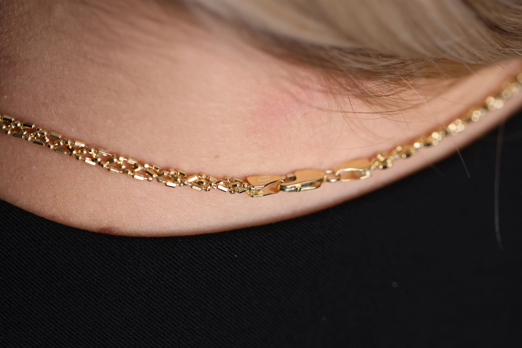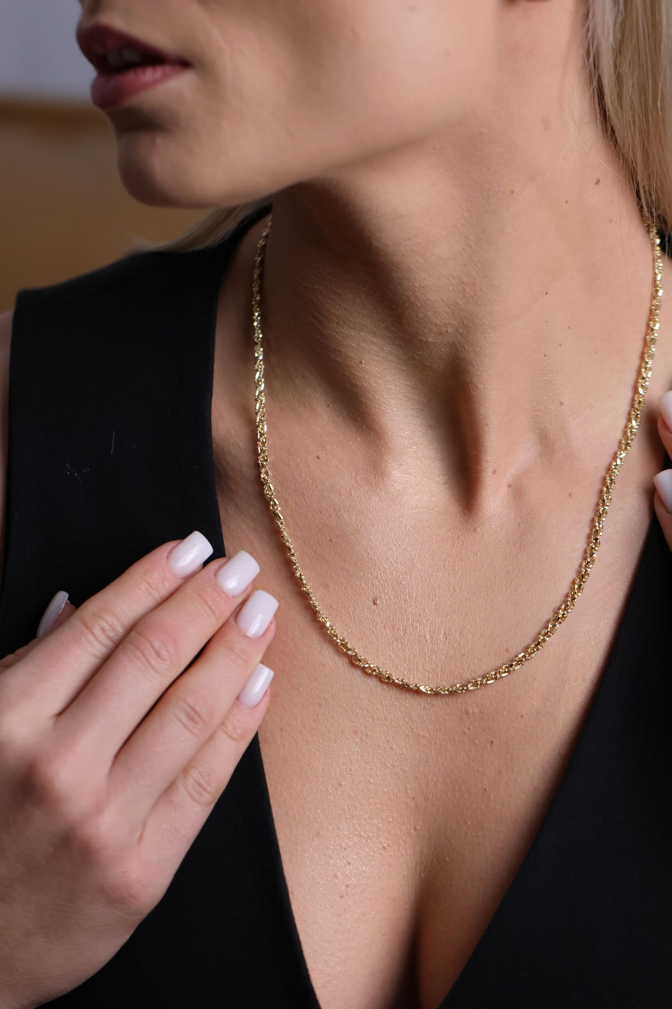 DNA to wyjątkowy złoty łańcuszek o misternym, plecionym splocie, który nawiązuje do struktury DNA, symbolizując harmonijną równowagę i wyjątkowość. Jego unikalny design przyciąga uwagę i podkreśla indywidualny styl każdej kobiety.