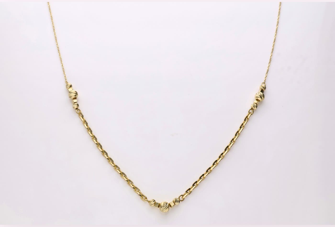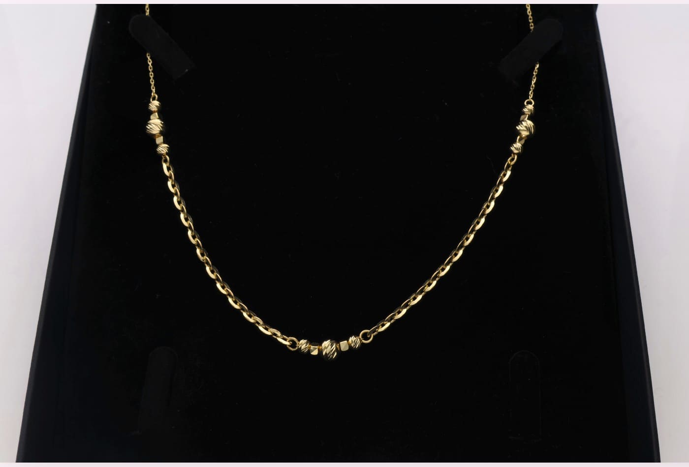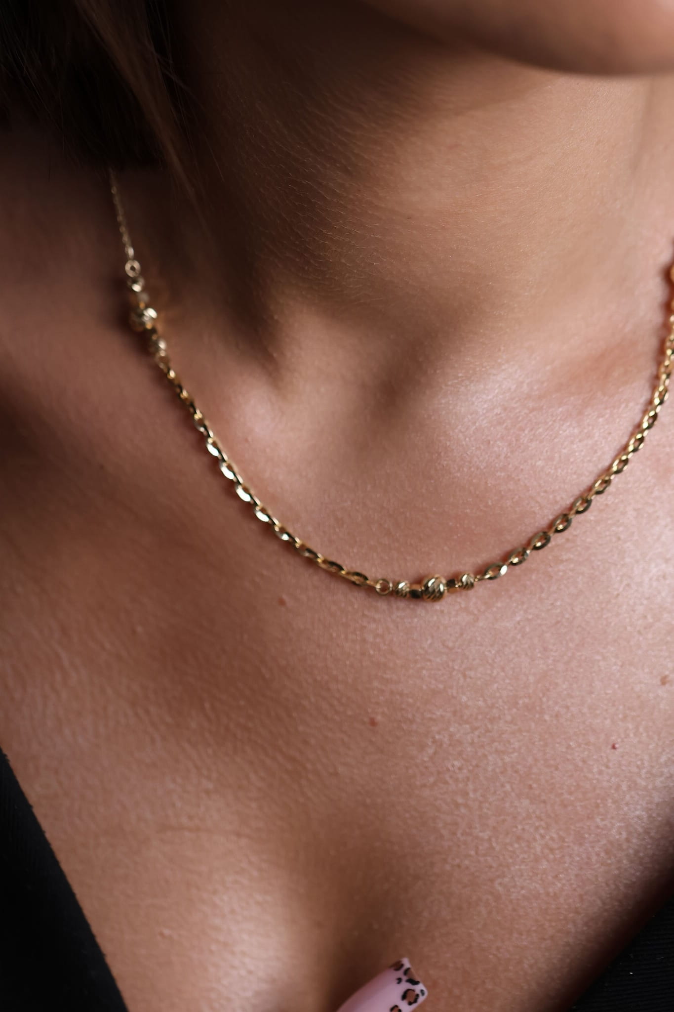 Harmony to wyjątkowy złoty łańcuszek, który łączy subtelny design z wyrafinowanymi detalami. Unikalne kulki zdobiące splot nadają mu oryginalny charakter i tworzą harmonijną kompozycję, która przyciąga spojrzenia.