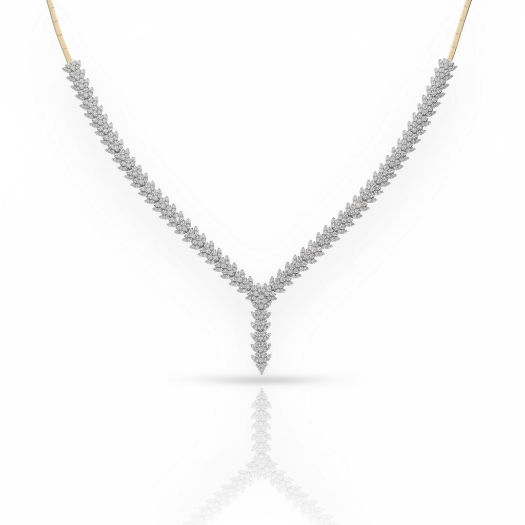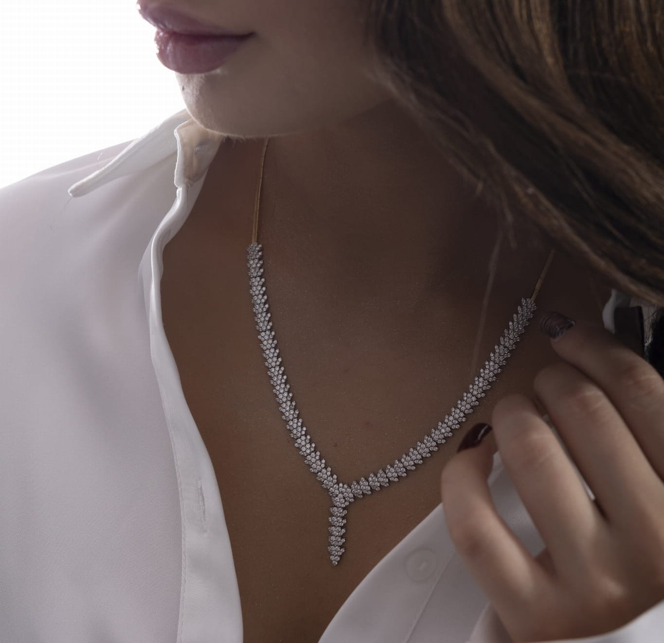 Forma naszyjnika jest elegancka, a jednocześnie nowoczesna — idealna dla kobiet, które lubią wyrazistą biżuterię z klasą. Cyrkonie odbijają światło przy każdym ruchu, nadając całości luksusowego i dopracowanego wyglądu.