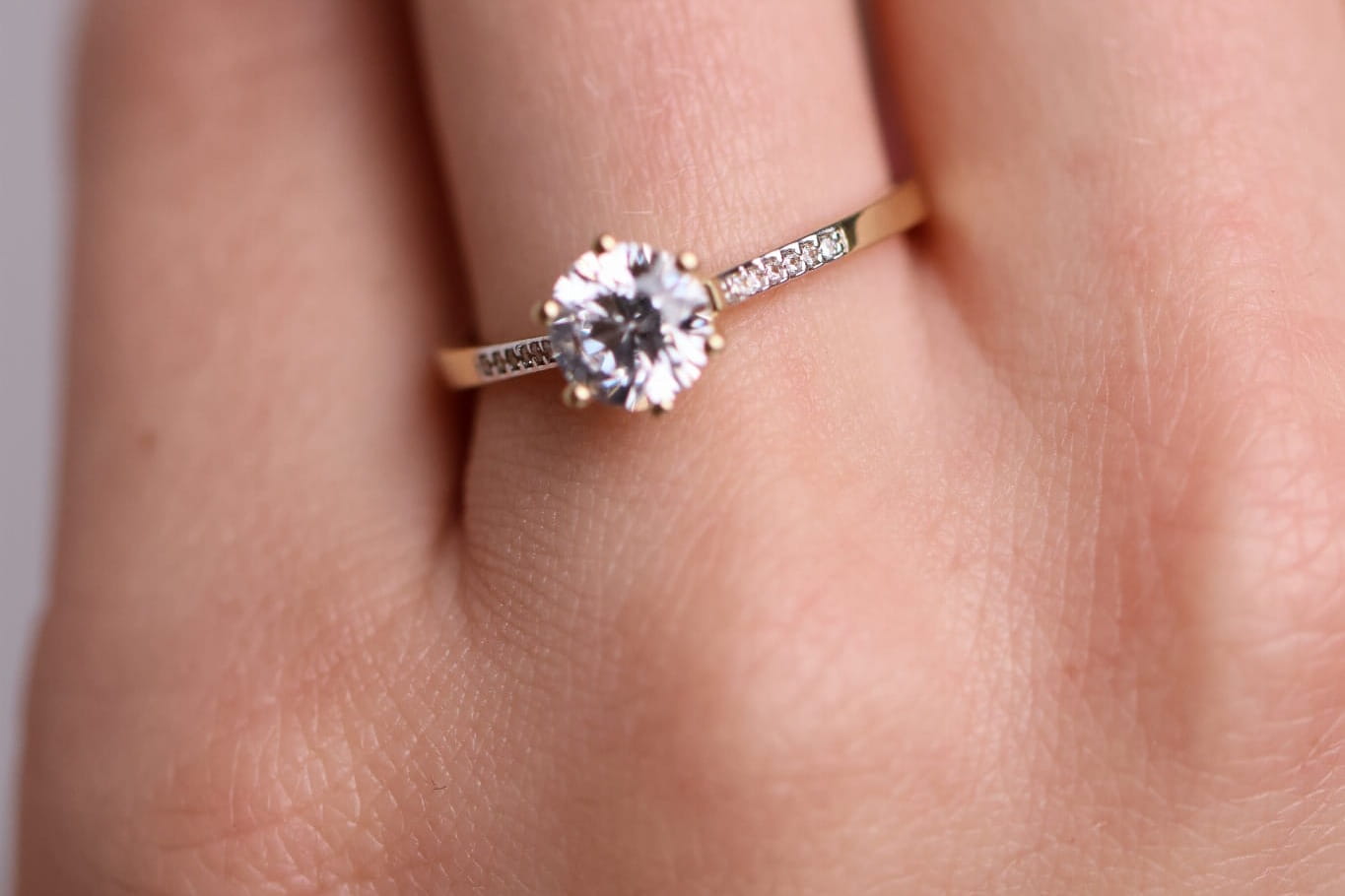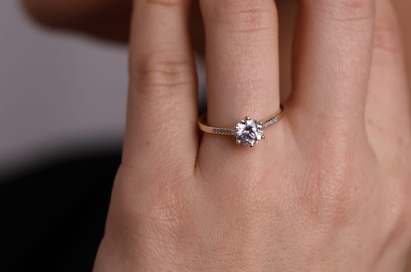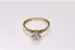 Dodatkowo, drobne kamienie umieszczone wzdłuż obrączki podkreślają blask centralnej cyrkonii, dodając całości luksusowego charakteru.