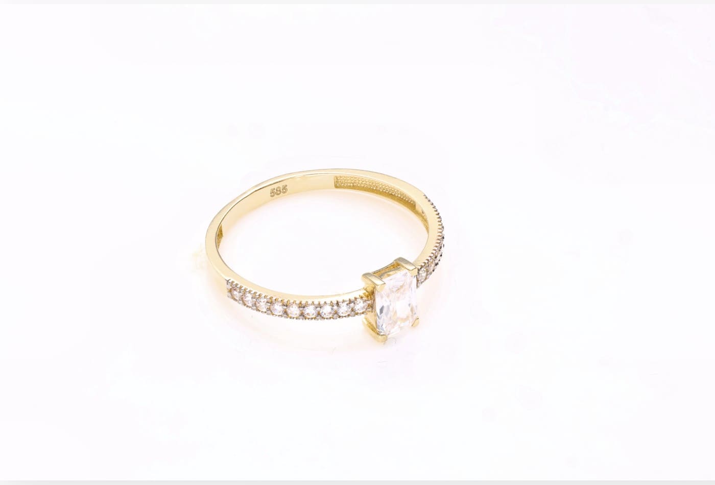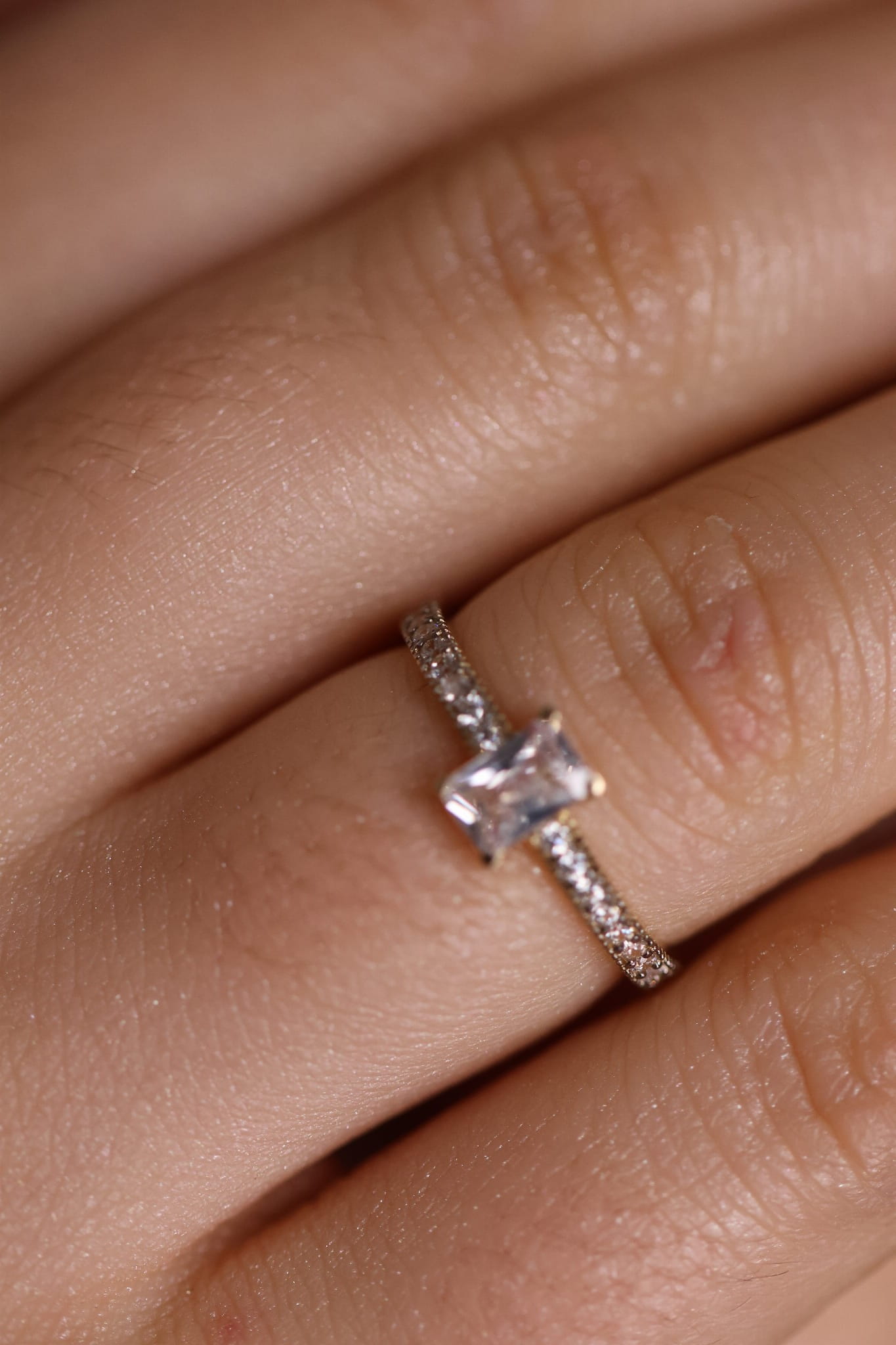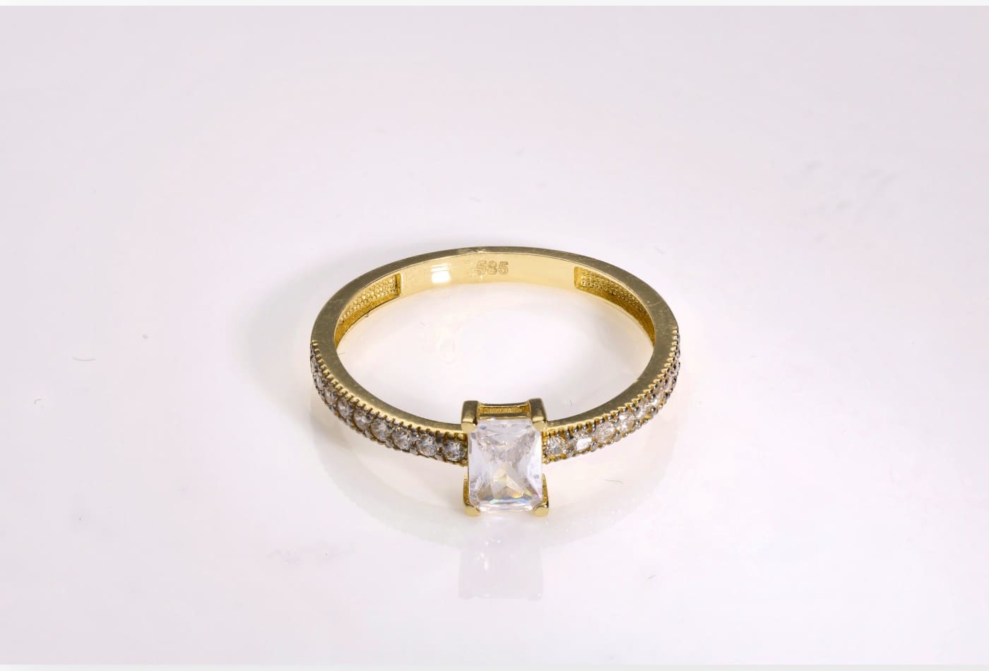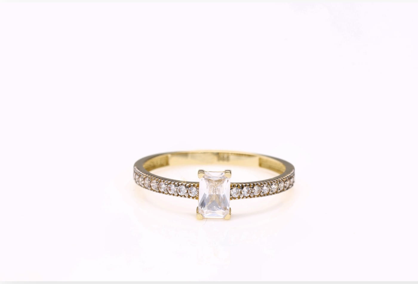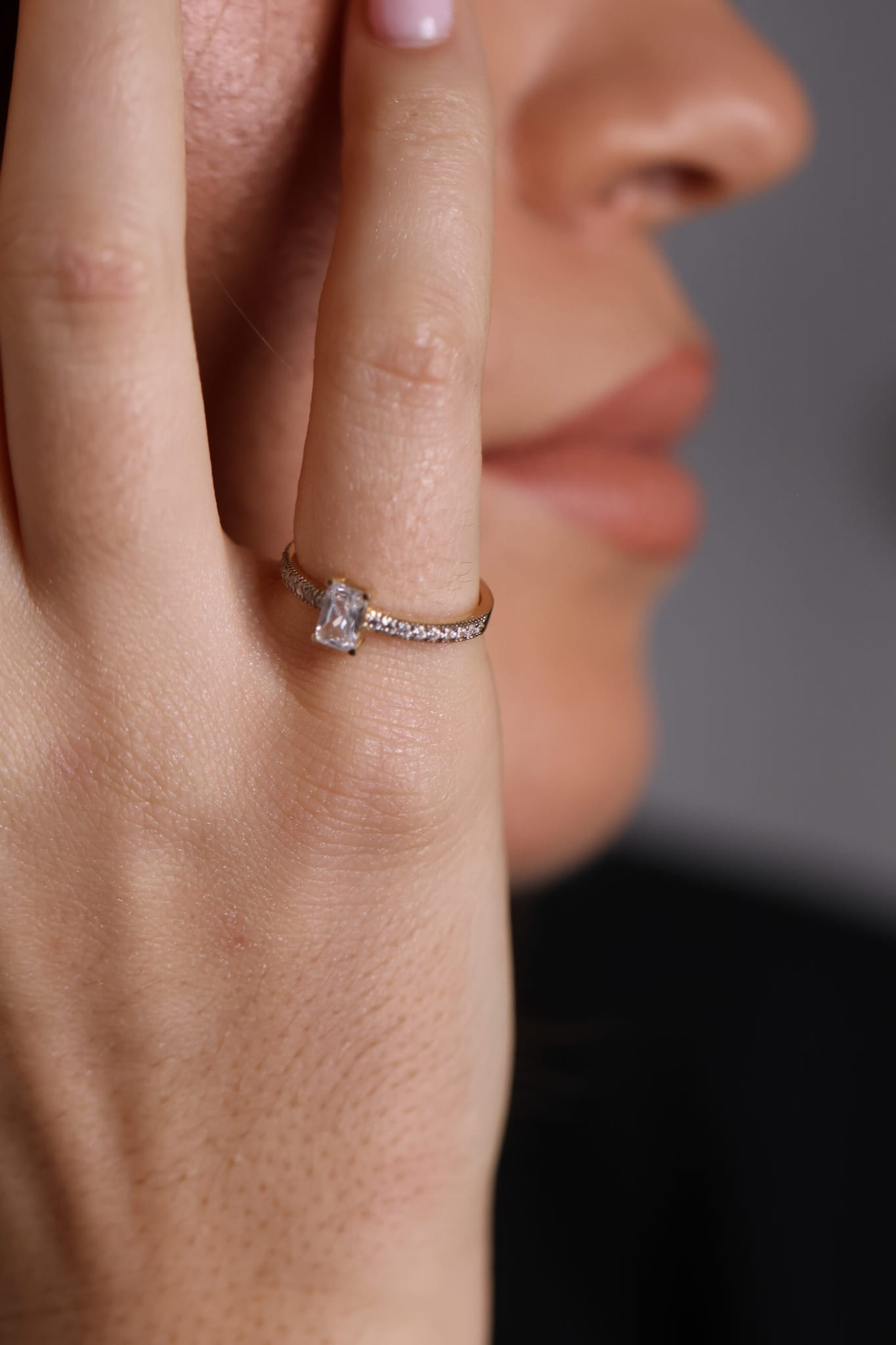 Pierścionek Grace zachwyca subtelnością i elegancją. Smukła obrączka wysadzana precyzyjnie osadzonymi cyrkoniami stanowi doskonałą oprawę dla centralnego prostokątnego kamienia, który emanuje delikatnym blaskiem. To idealny wybór dla osób ceniących klasyczne piękno w nowoczesnym wydaniu.