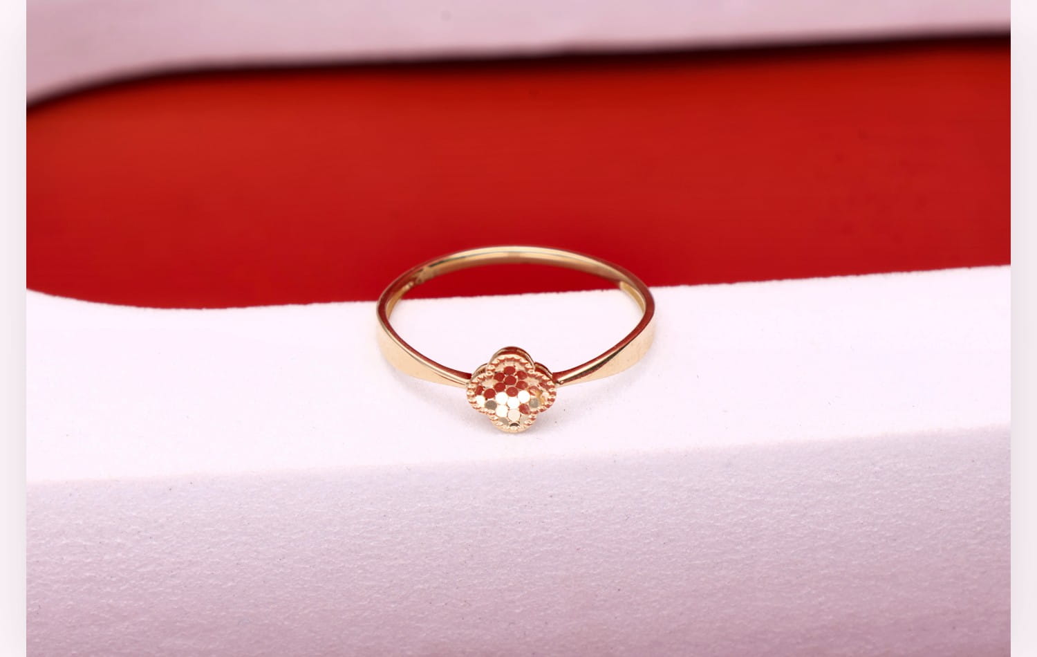 Minimalistyczny pierścionek Mira to subtelna forma delikatności. Centralny motyw przypomina drobny kwiat o strukturalnej powierzchni, która pięknie odbija światło i nadaje mu wyjątkowego blasku. To detal, który przyciąga spojrzenie – ale wciąż pozostaje elegancko dyskretny.